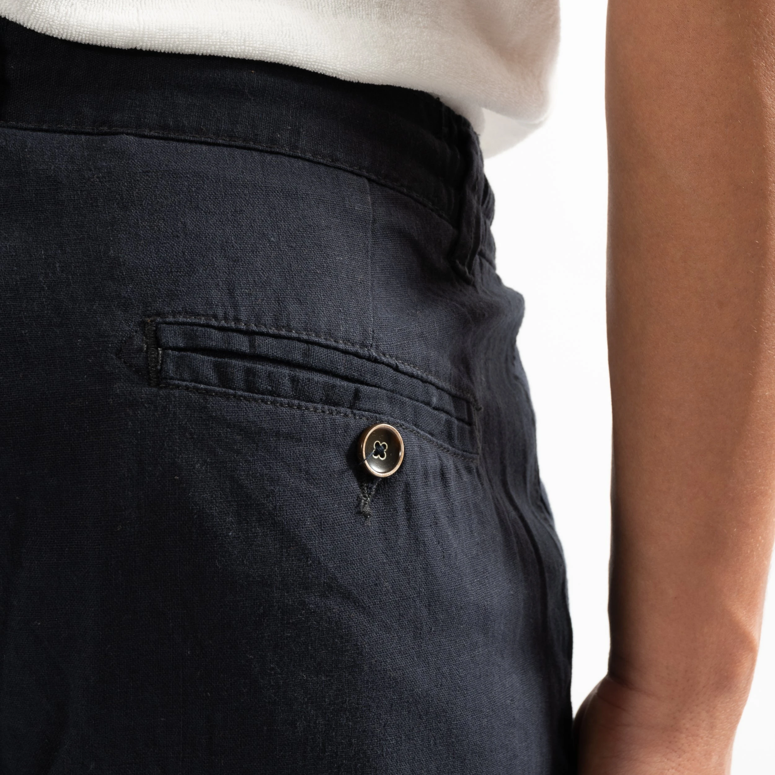 • Byxan är sydd i en tunn och härlig bomull-linnekvalité och är tvättad i färgen.