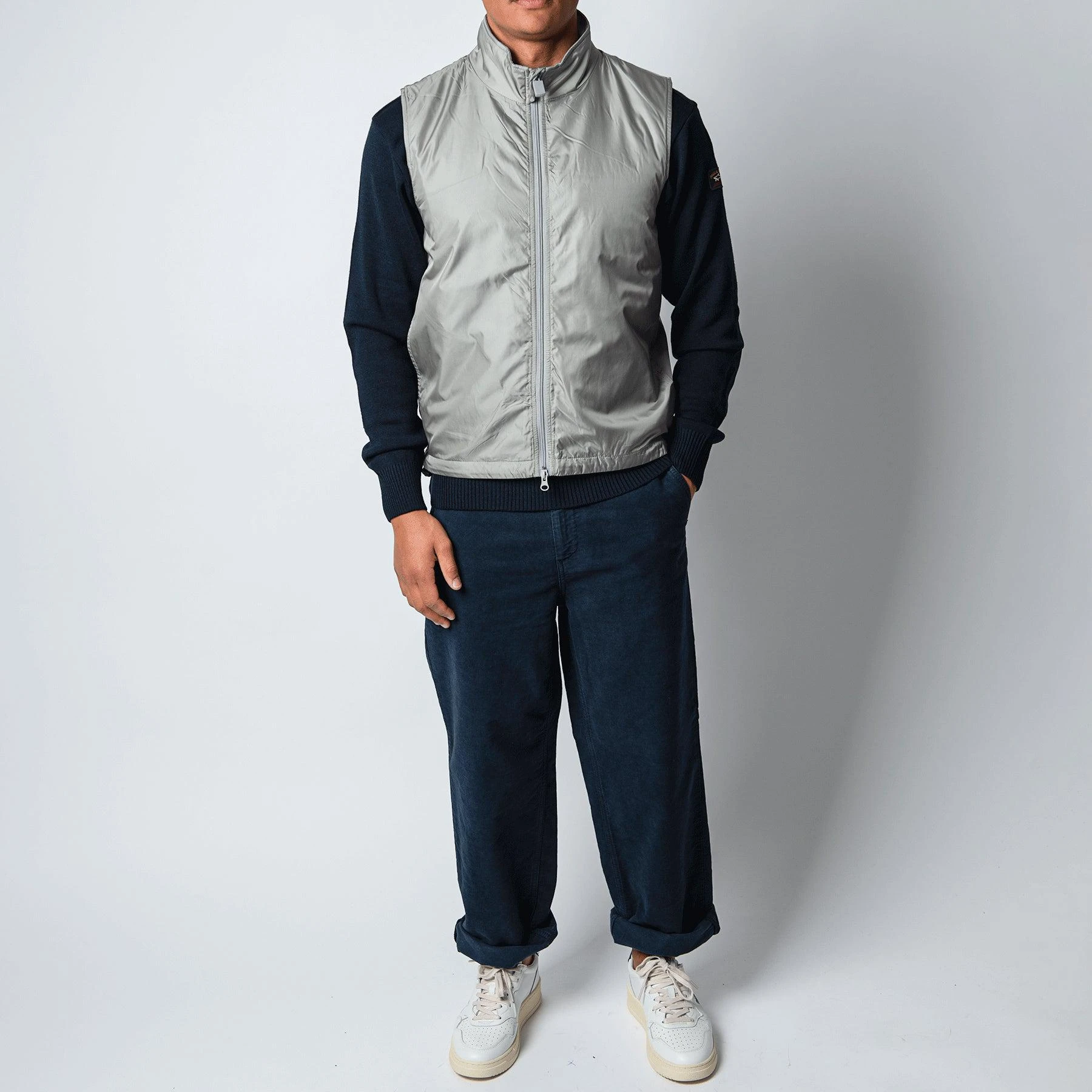 • Västen har två stycken sidfickor samt stängs med dubbla dragkedjor. Västen har en stå-krage.