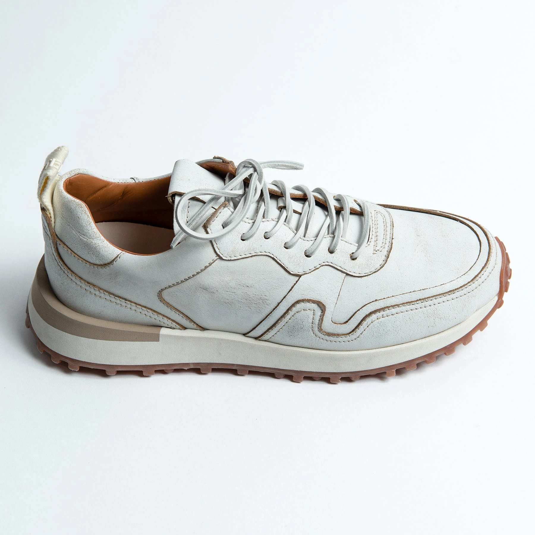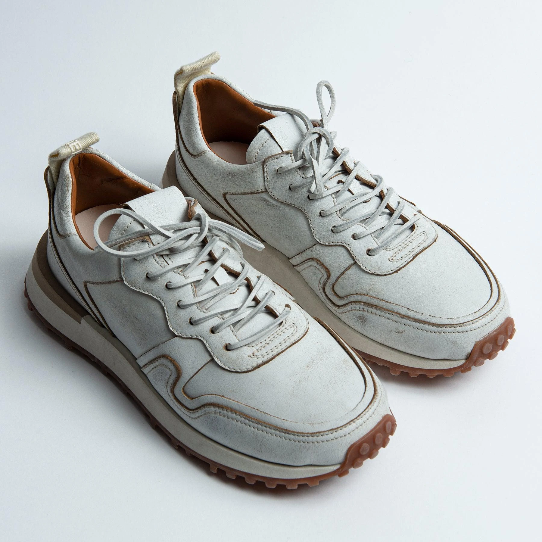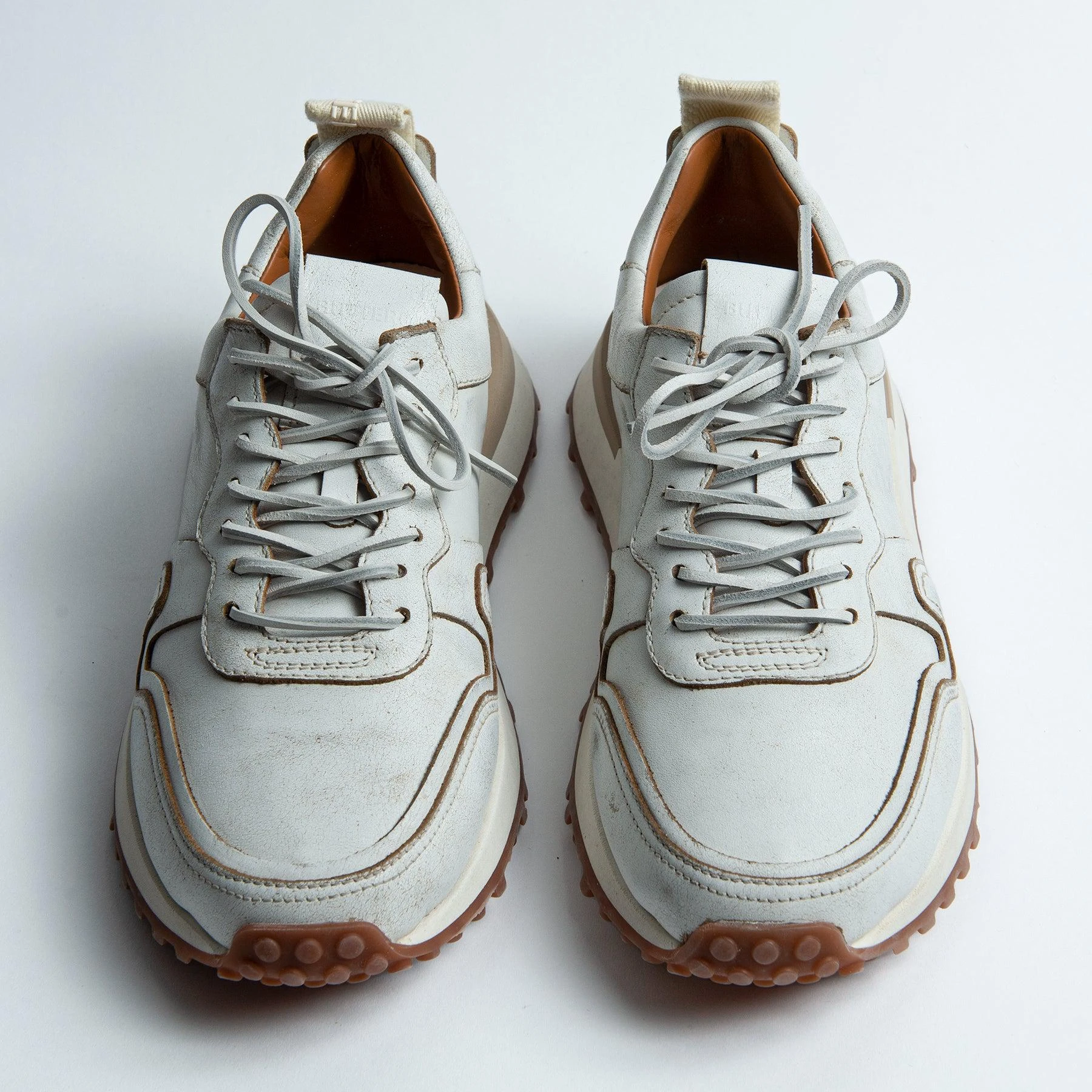 • Skon är sydd i en härlig kalvläderkvalité. Skon är sliten i färgen för att ge den en fin patina.