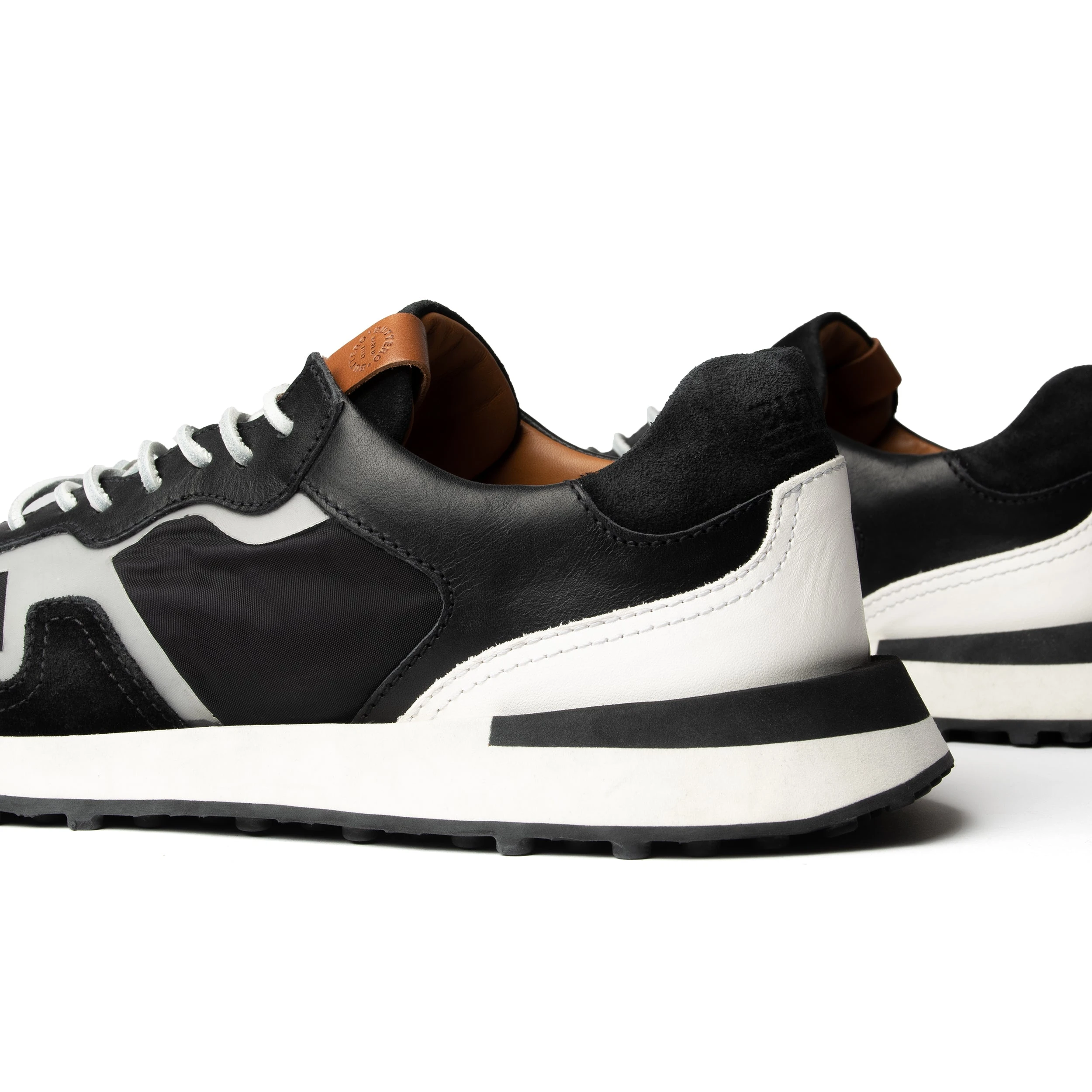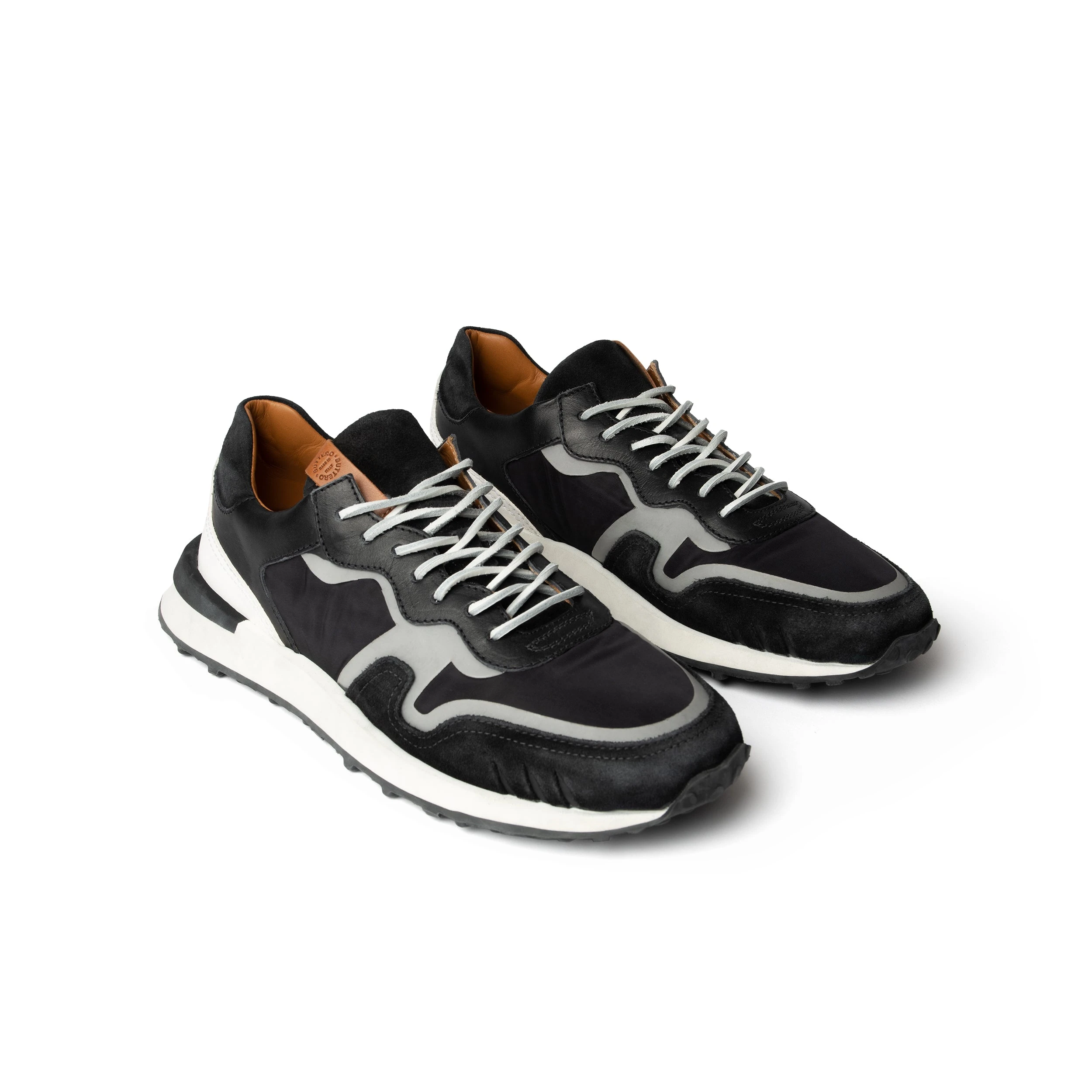 • Skon har en bredare gummisula med dubbar och stängs med matchande läder-snören.
