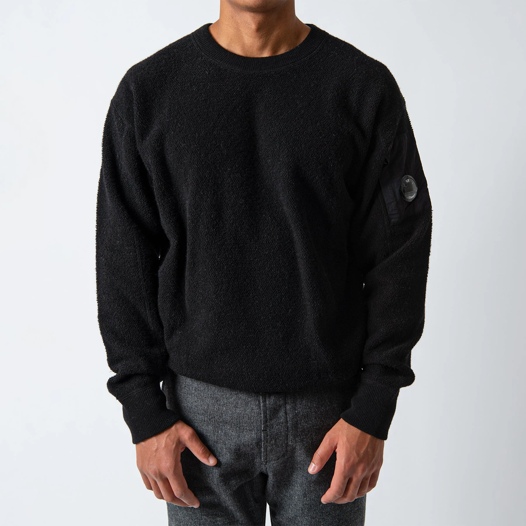 • Tröjan har en normal rundhalsad krage och har normalt åtsittande muddar vid ärm- samt plaggslut. Tröjan har märkets ikoniska lins på samt är lappad med med ett glatt tyg på vänster ärm.