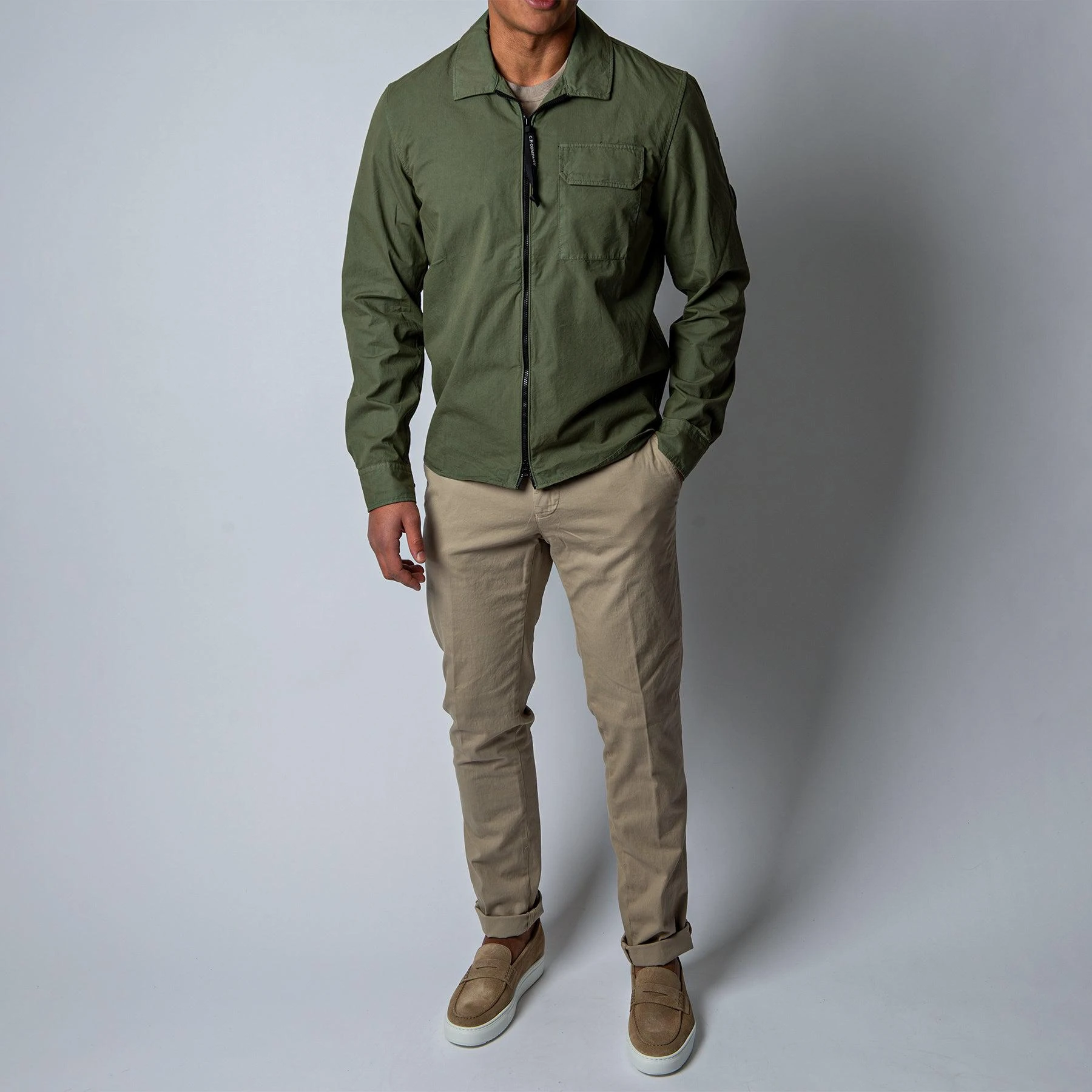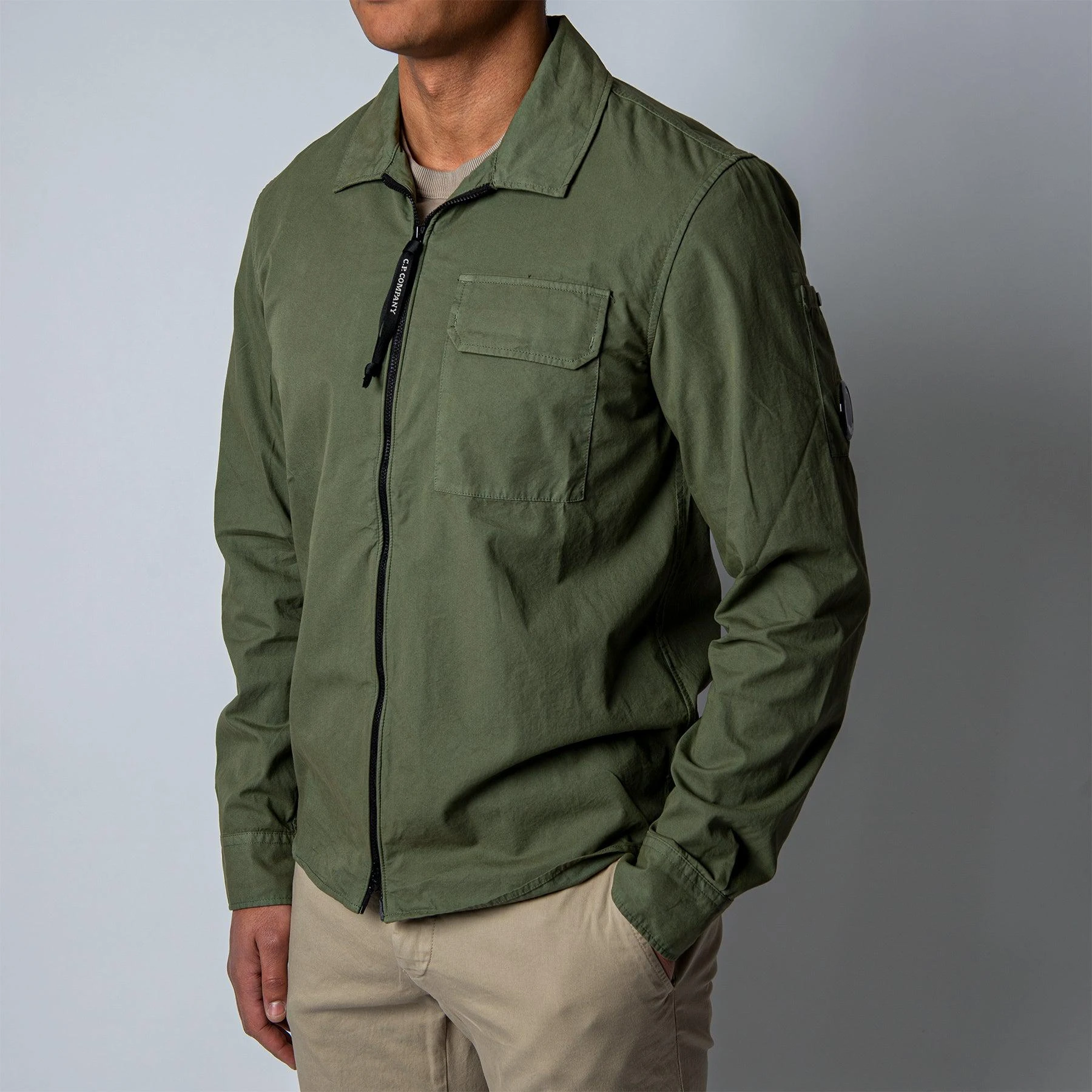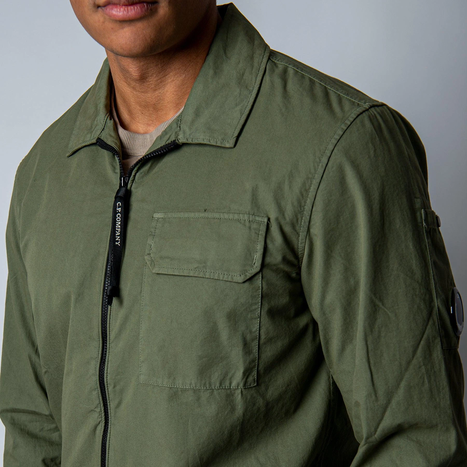 • Overshirten stängs med dubbla dragkedjor och har en skjortkrage. Overshirten har märkets ikoniska lins på vänster ärm samt en bröstficka med ficklock på vänster bröst.