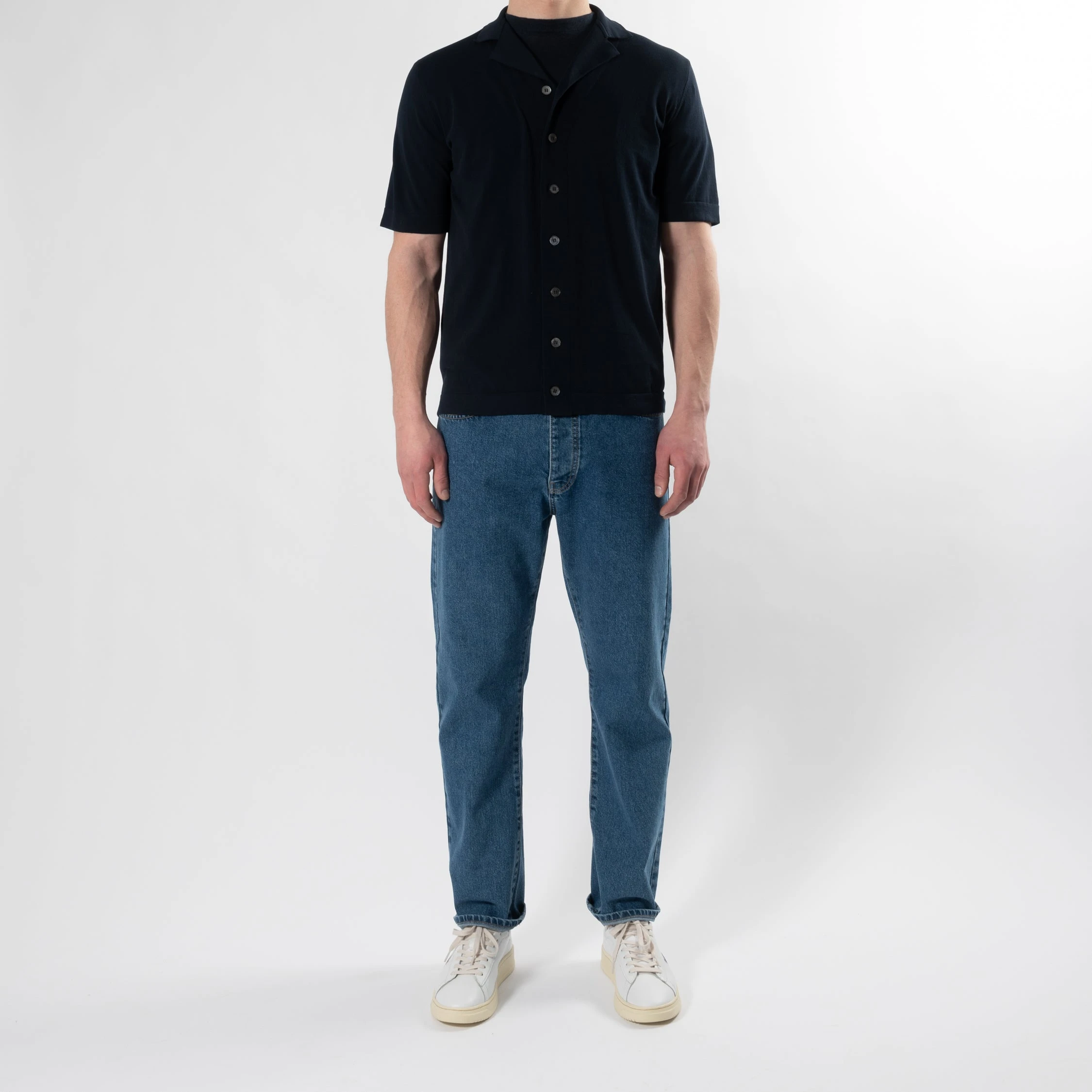 • Skjortan stängs med stora pärlemoknappar och har en vikt bowlingkrage. Skjortan är slimmad i passformen och har en löst åtsittande muddar vid ärm- samt plaggslut.