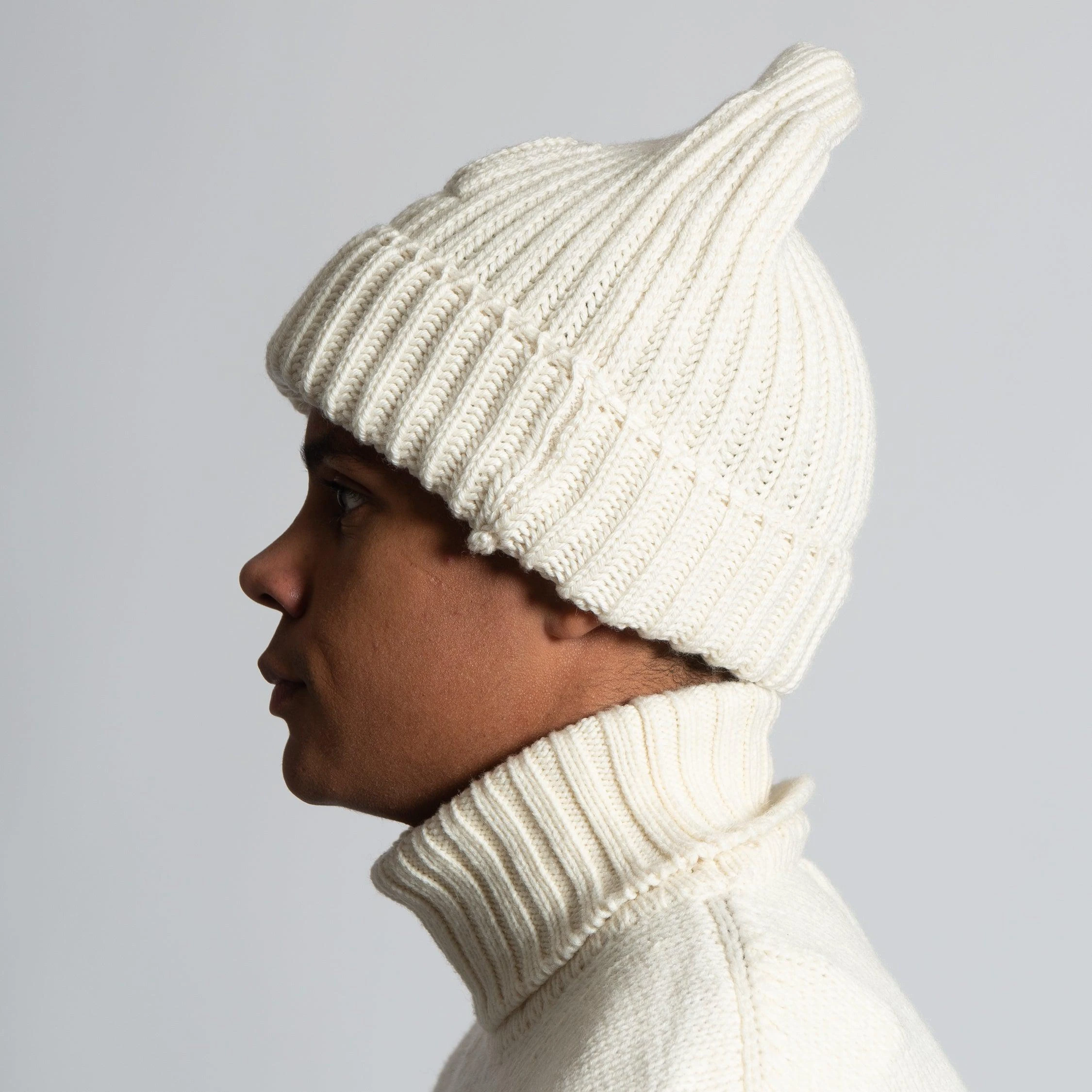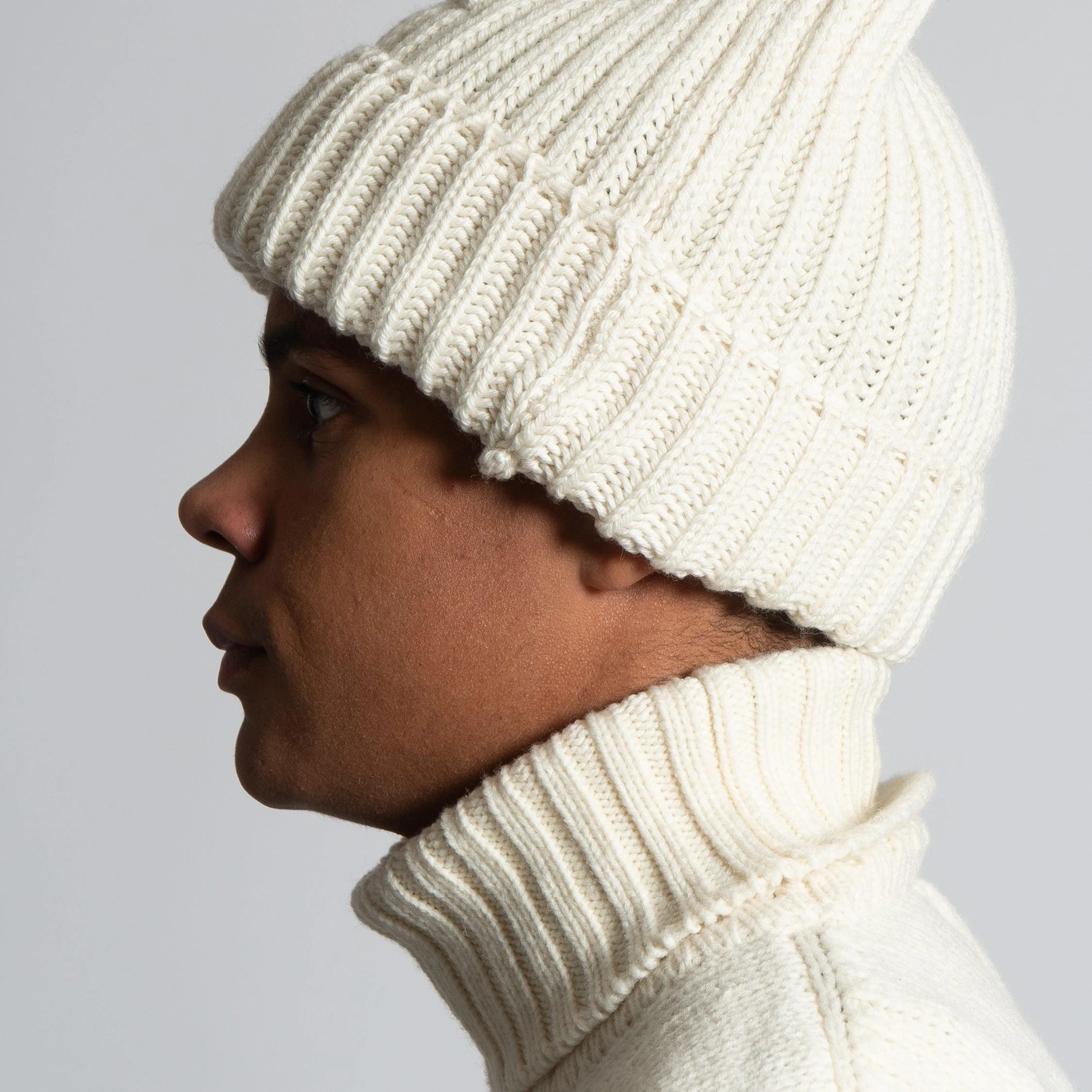 G.R.P LUXURY WOOL BEANIE WITH ANCHOR ECRU