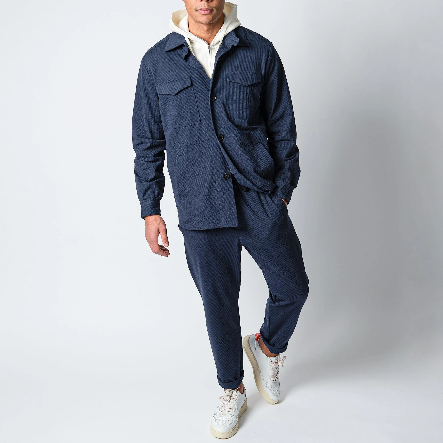 • Overshirten är i en sval och tunn bomullskvalité med polyester. Overshirten går att matcha med en byxa som du hittar här.