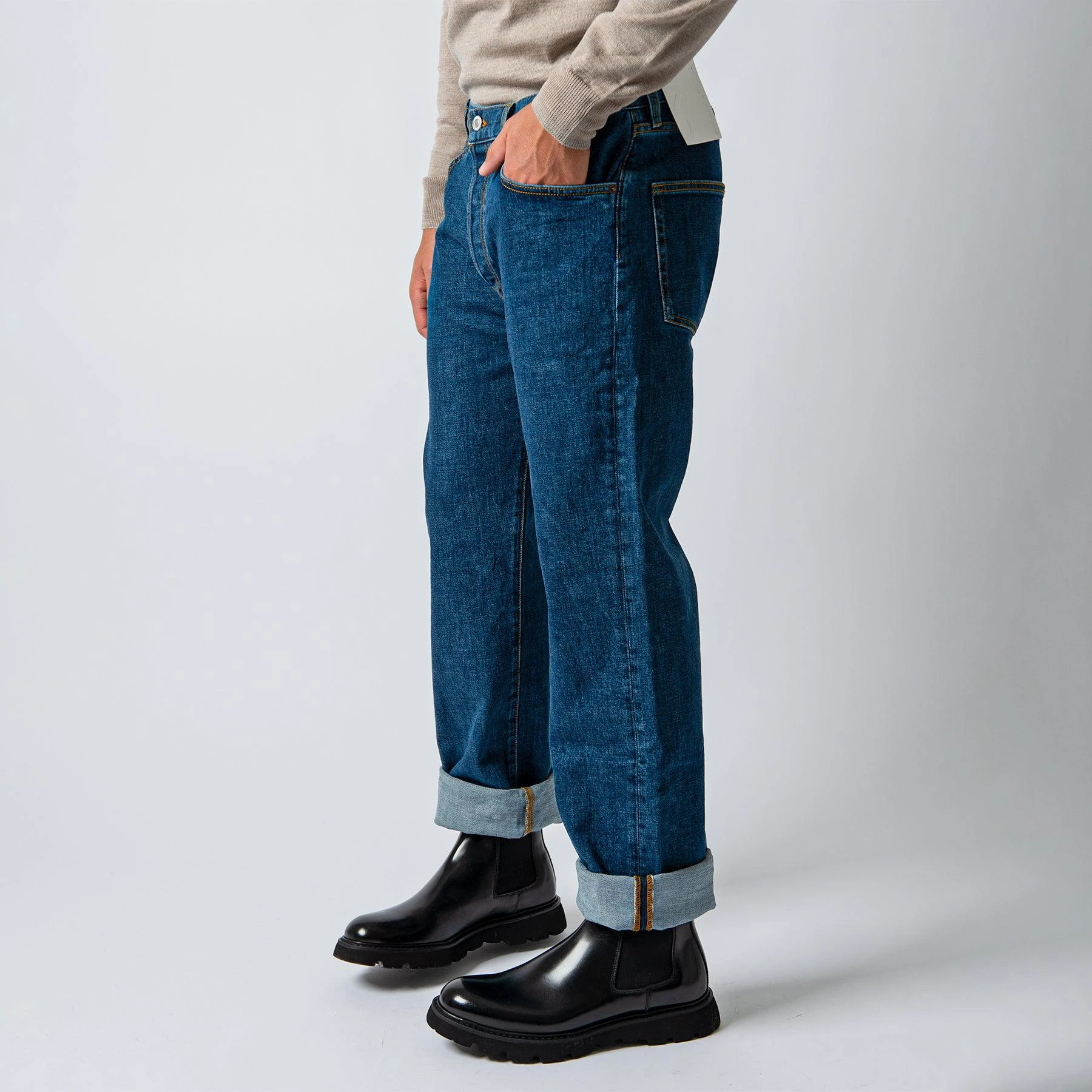 • Jeansen är höga i midjan och bred över låren samt svagt avsmalnade ner till foten. Jeansen har ett lite bredare fotslutfotslut.