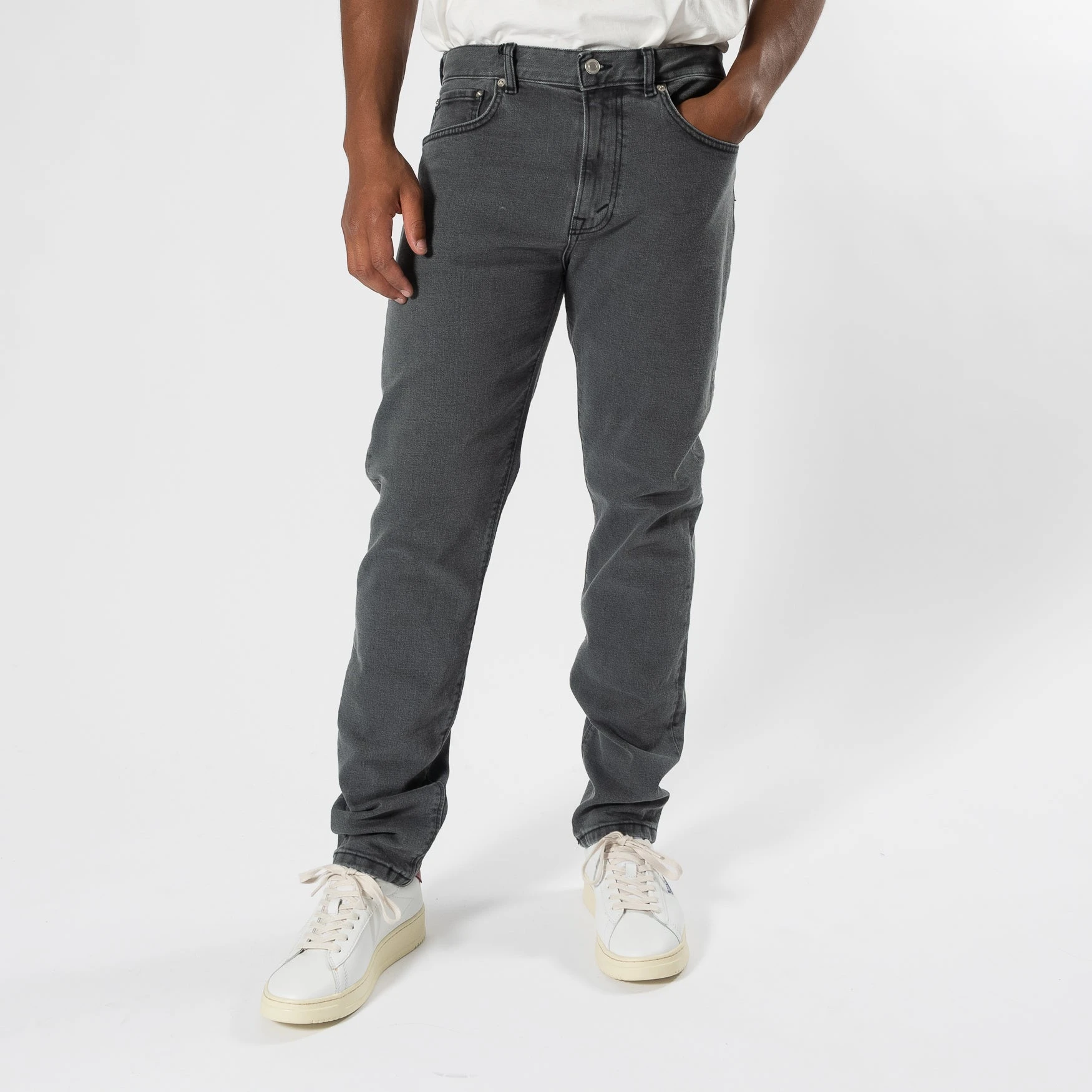 • Jeansen är medelhöga i midjan och jämt avsmalnande ner till foten. Jeansen har ett normalbrett fotslut.
