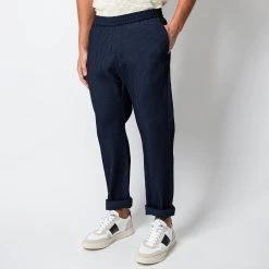 ADVERB DRAWSTRING COTTON LINEN PANTS NAVY