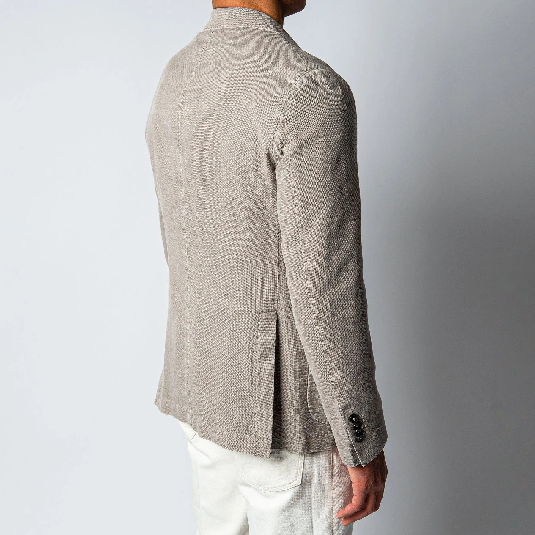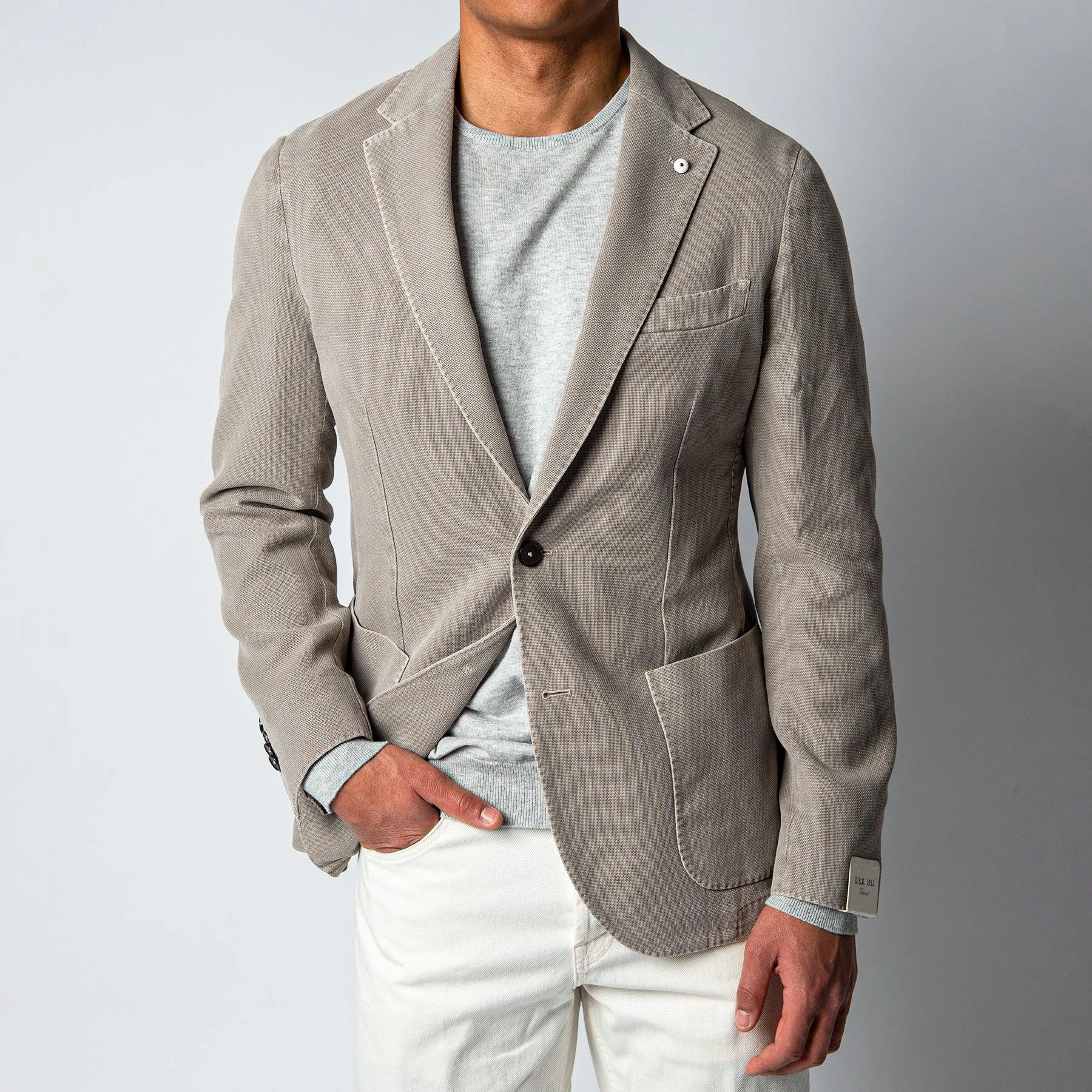 • Kavajen är sydd i ett tyg med en bomull-rami blandning och är tvättad i färgen.