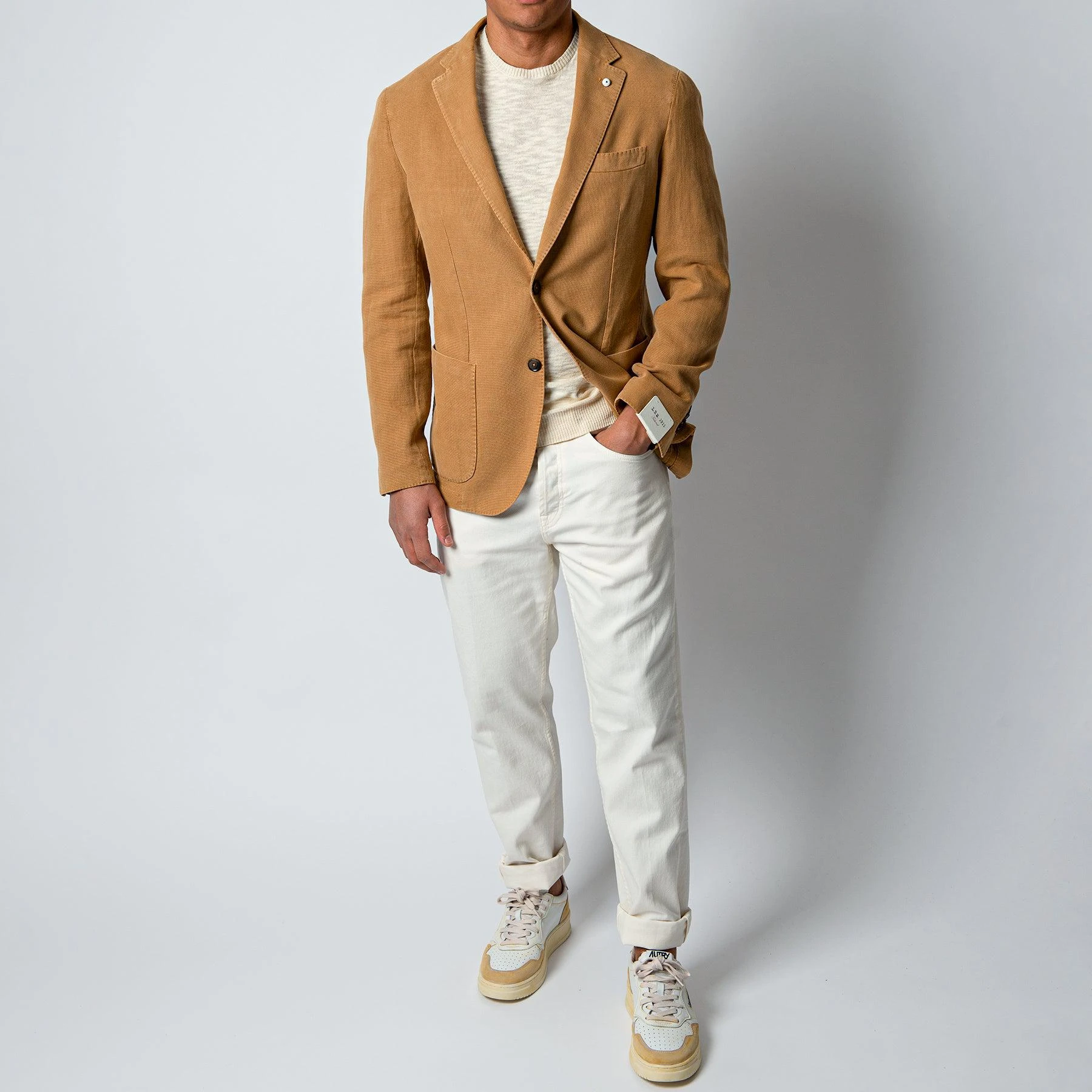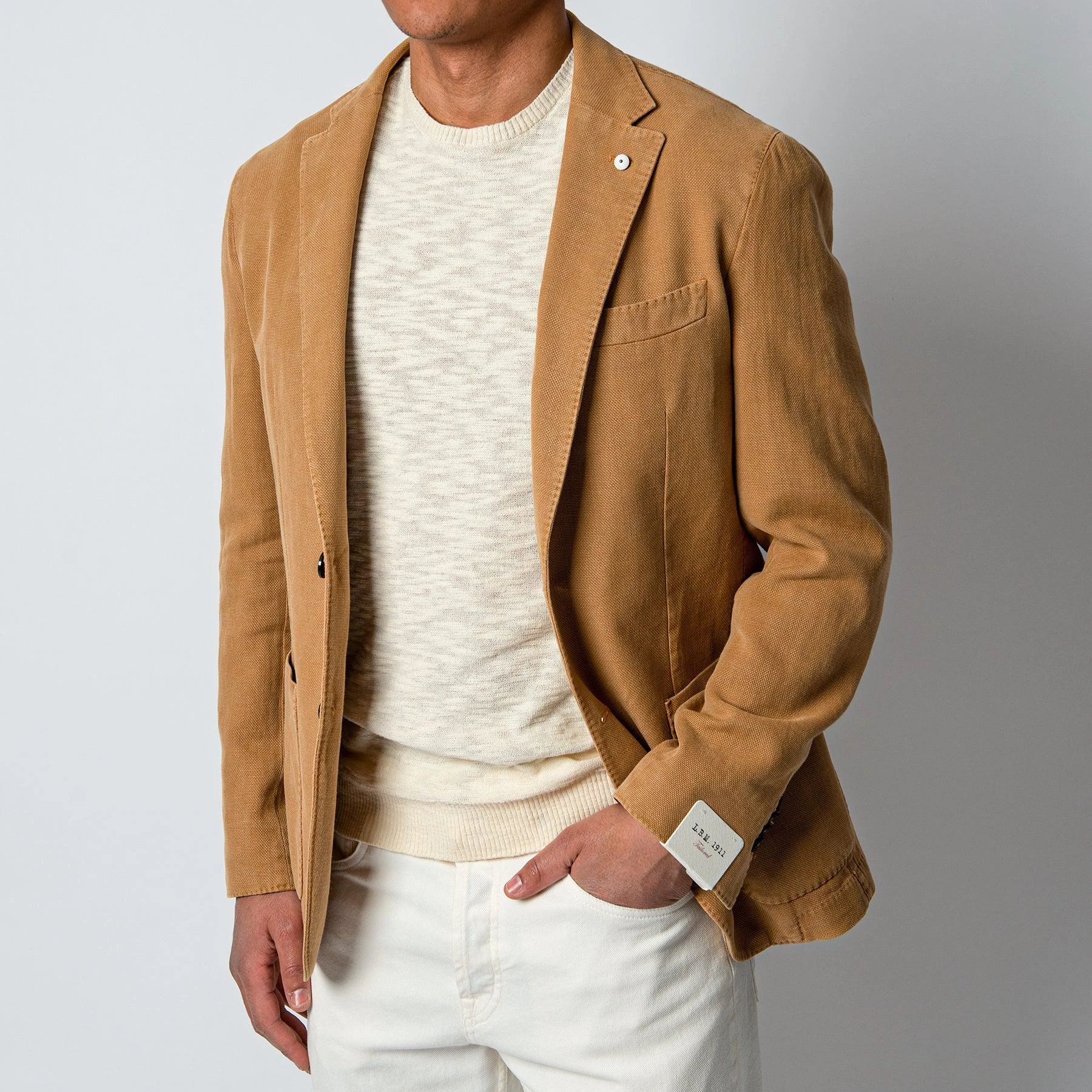 • Kavajen är sydd i ett tyg med en bomull-rami blandning och är tvättad i färgen.
