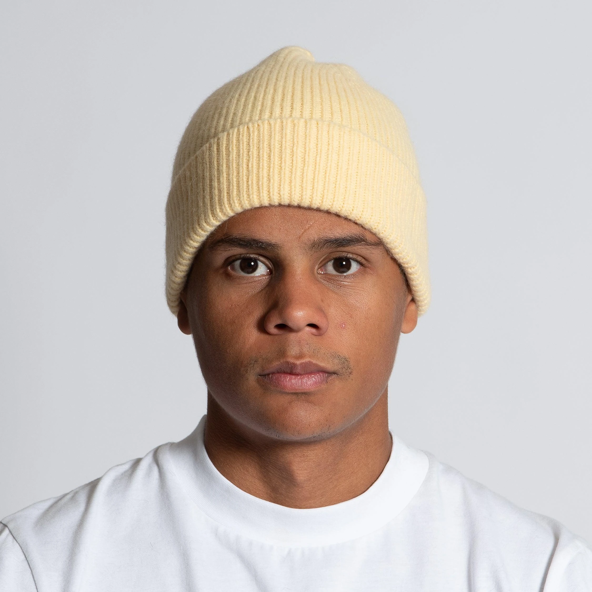 • Mössan är ribbstickad och normal hög i modellen. Mössan ha en preppad vikning.