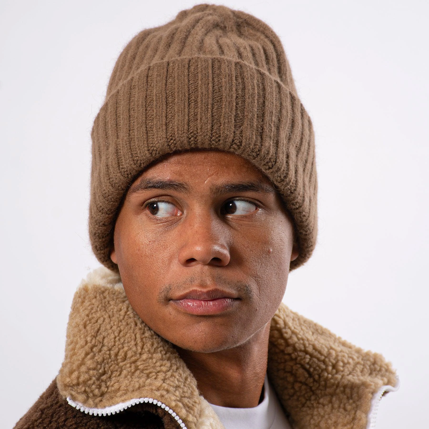 • Mössan är ribbstickad och hög i modellen. Mössan ha en preppad vikning.