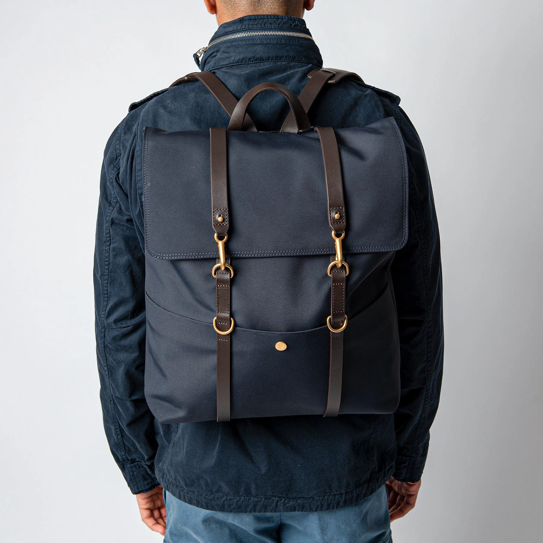 • Ryggsäcken är sydd i en polyester kanvas med läder detaljer och är vattenavvisande.