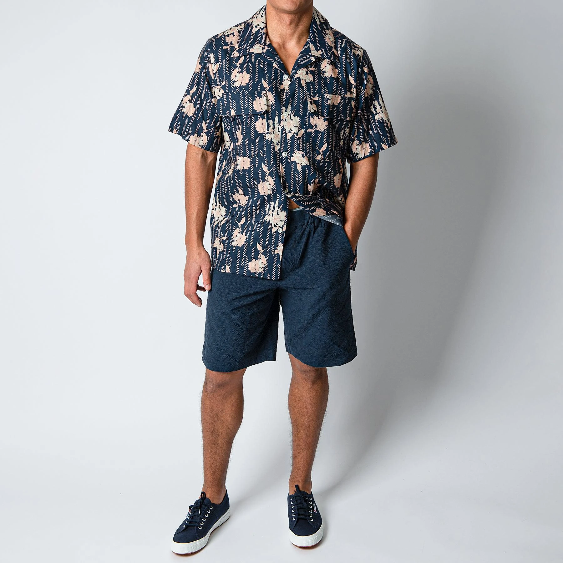 • Skjortan stängs med matchande knappar och har en vikt ”bowling-krage”. Skjortan är avslappnad i passformen och har två bröstfickor med ficklock.