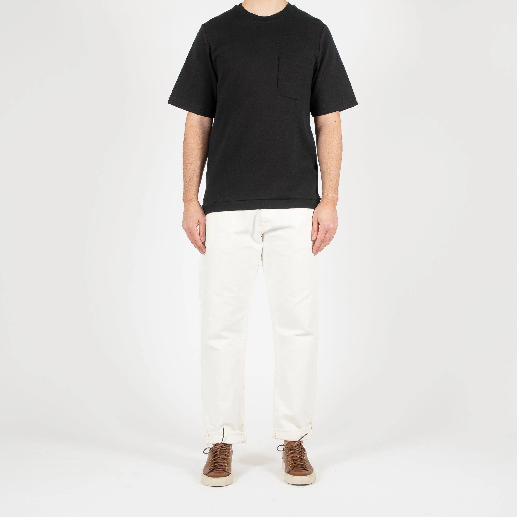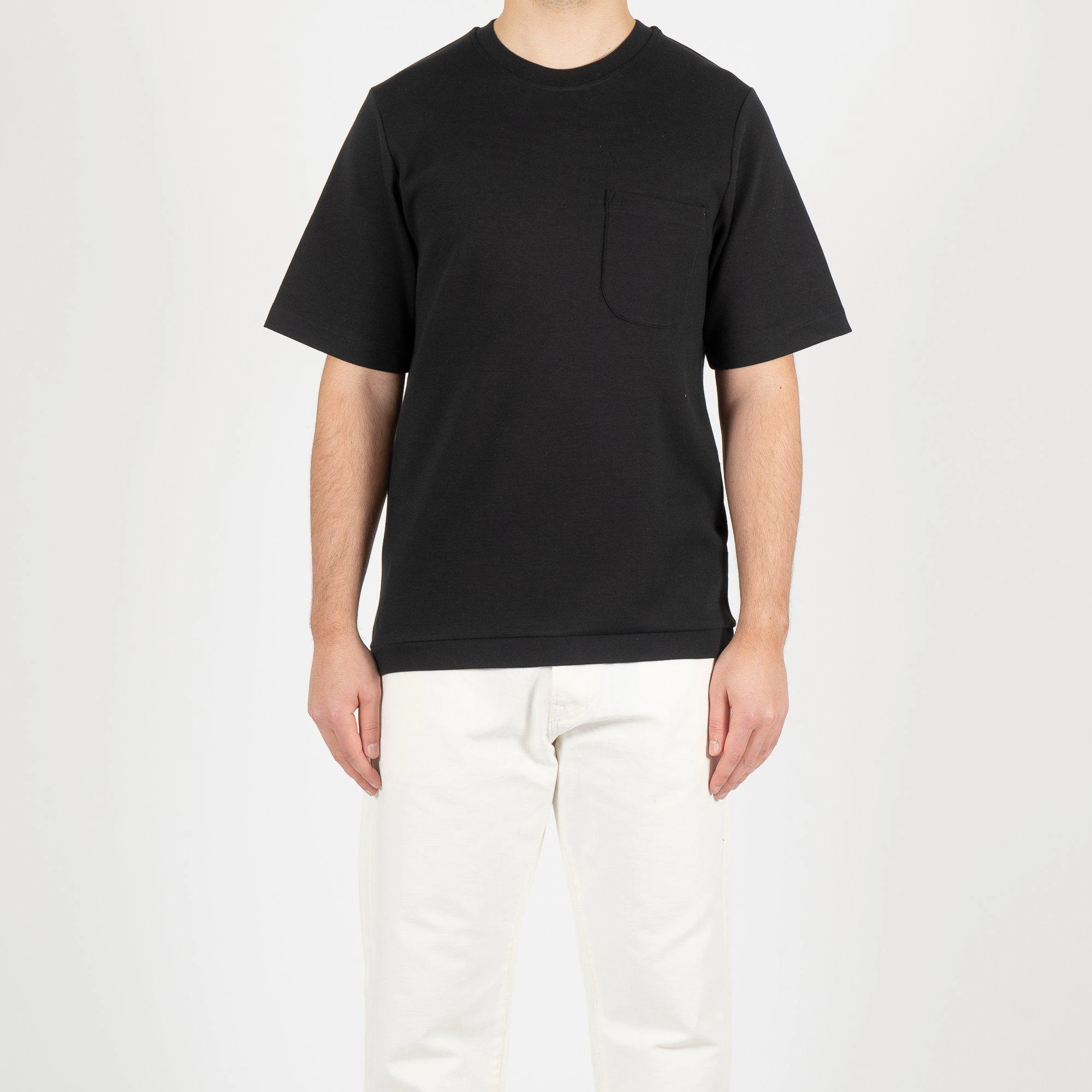 • T-shirten har en ribbstickad krage och har en lappad ficka på vänster bröst. T-shirten är rak i modellen för att ge ett avslappnat intryck.