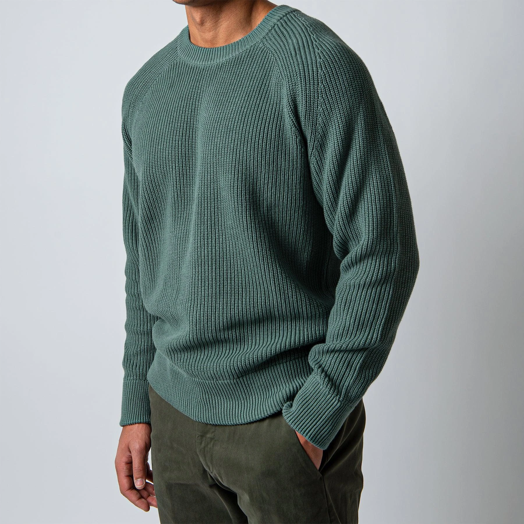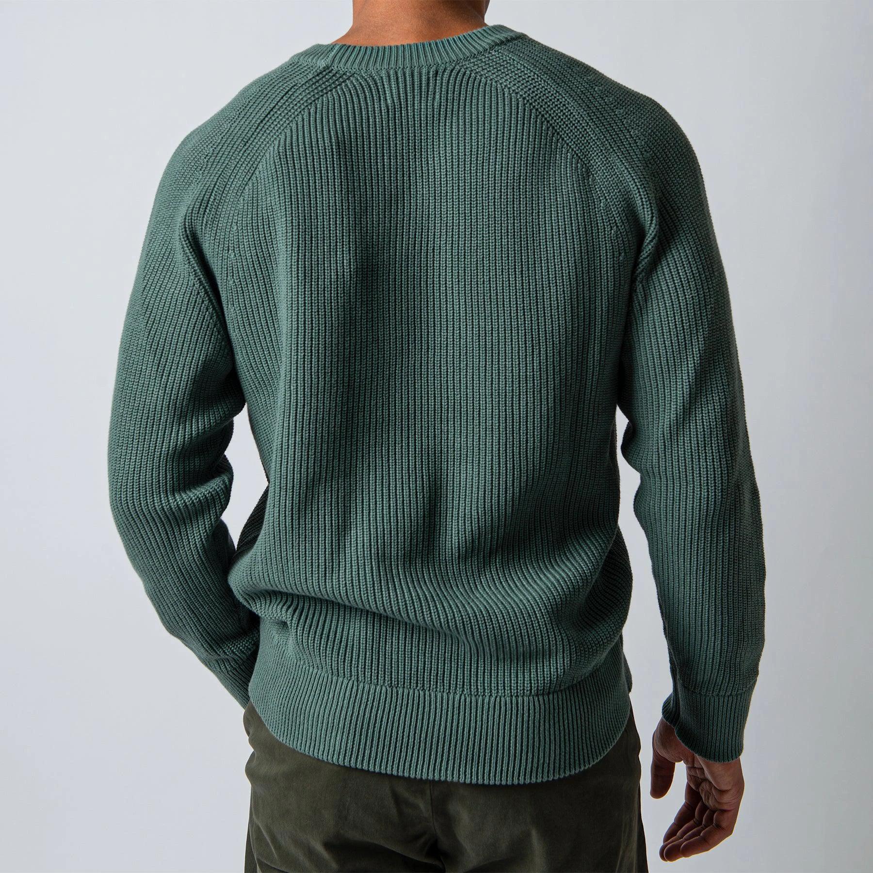 • Tröjan har en klassisk crewneck krage och har normalt åtsittande muddar vid ärm- samt plaggslut. Tröjan har en raglanaxel och är svagt boxig över kroppen.