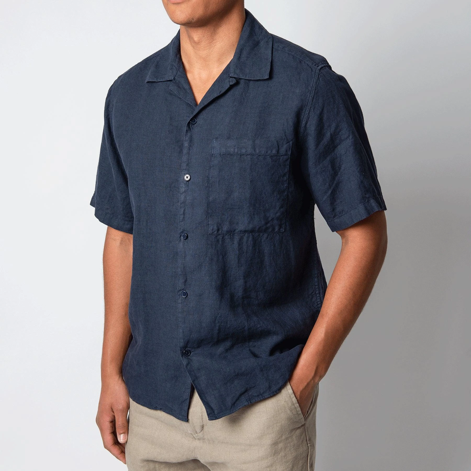 NN07 JULIO SS LINEN SHIRT NAVY BLUE