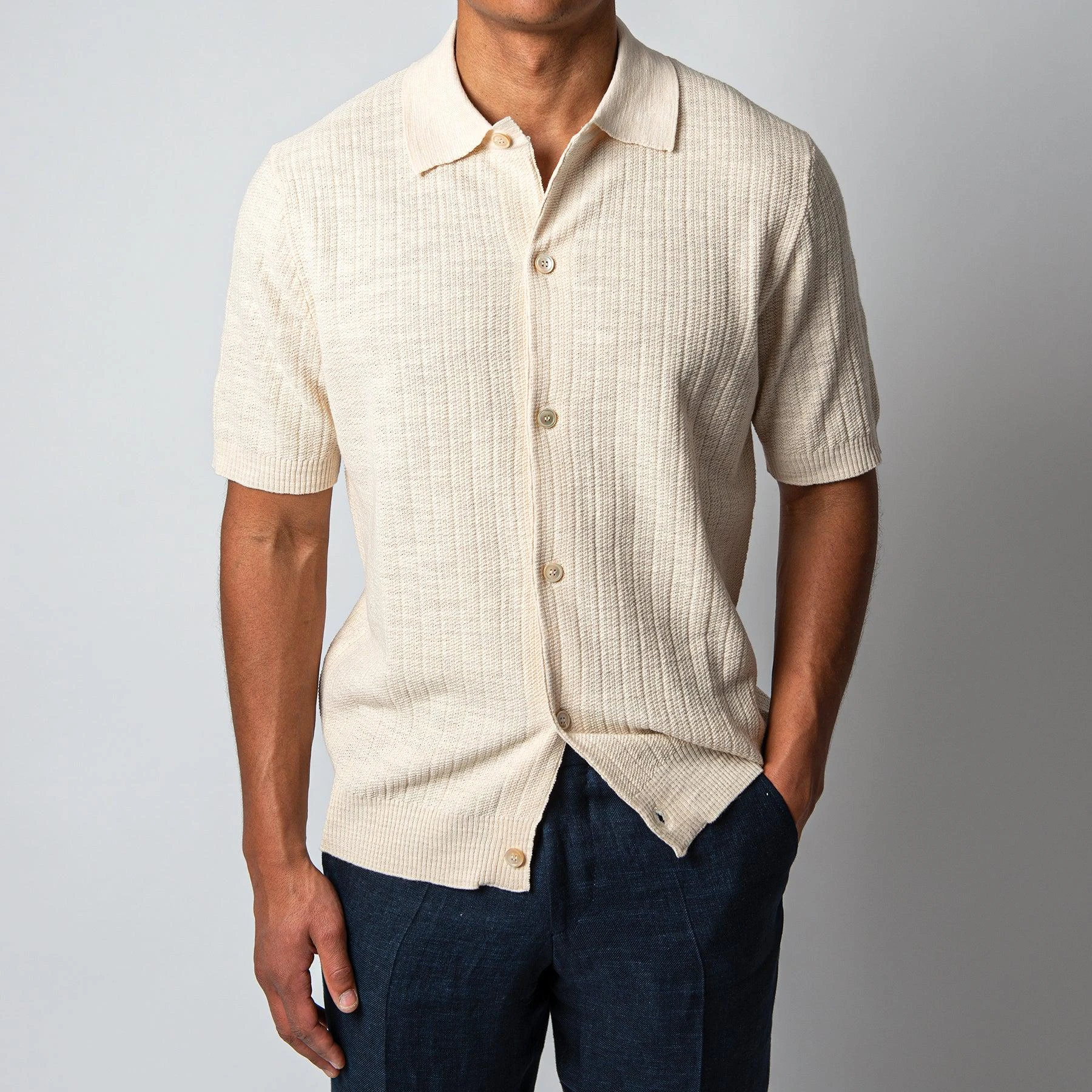 • Skjortan är i en mjuuk bomull-acrylblandning och är i en stickad kvalité.