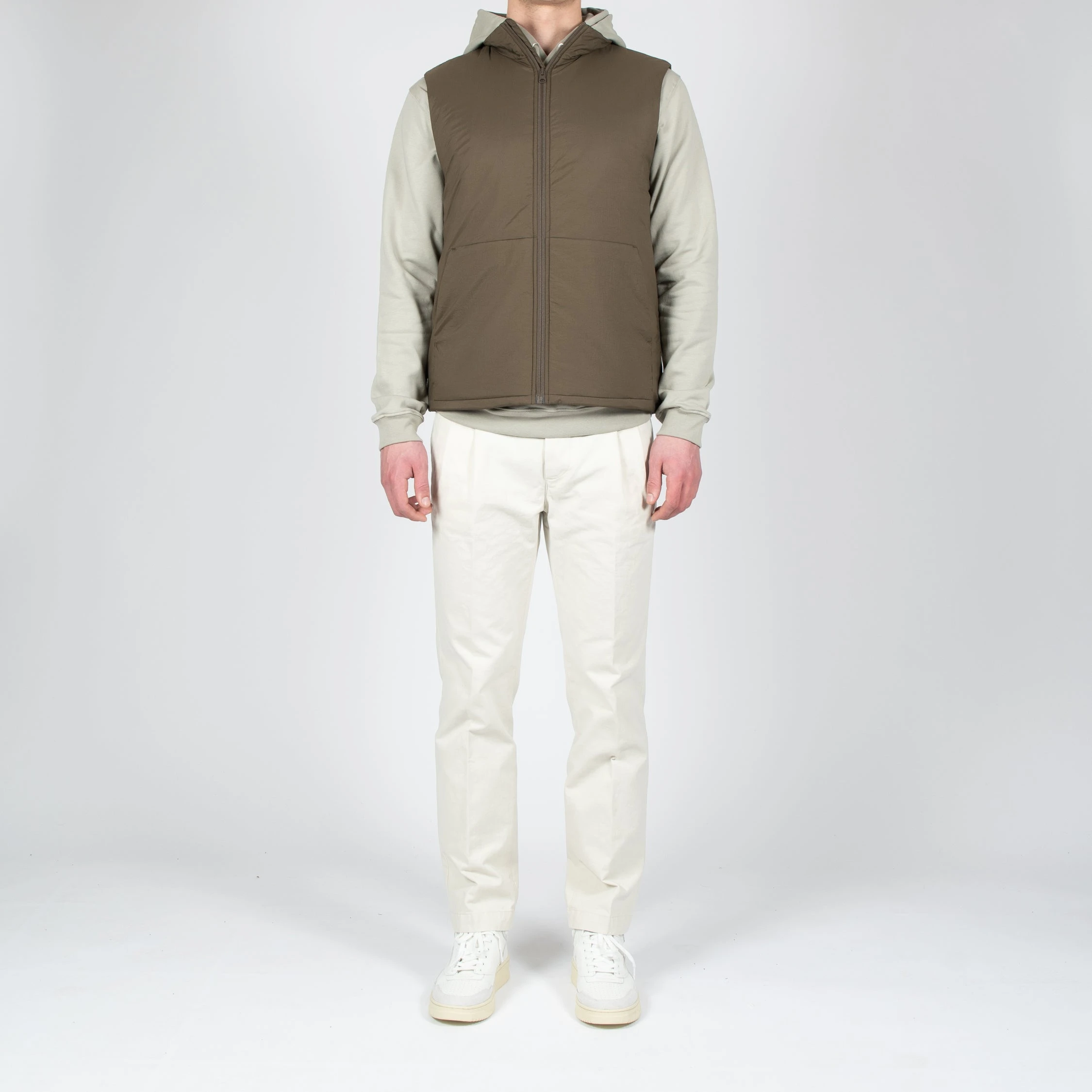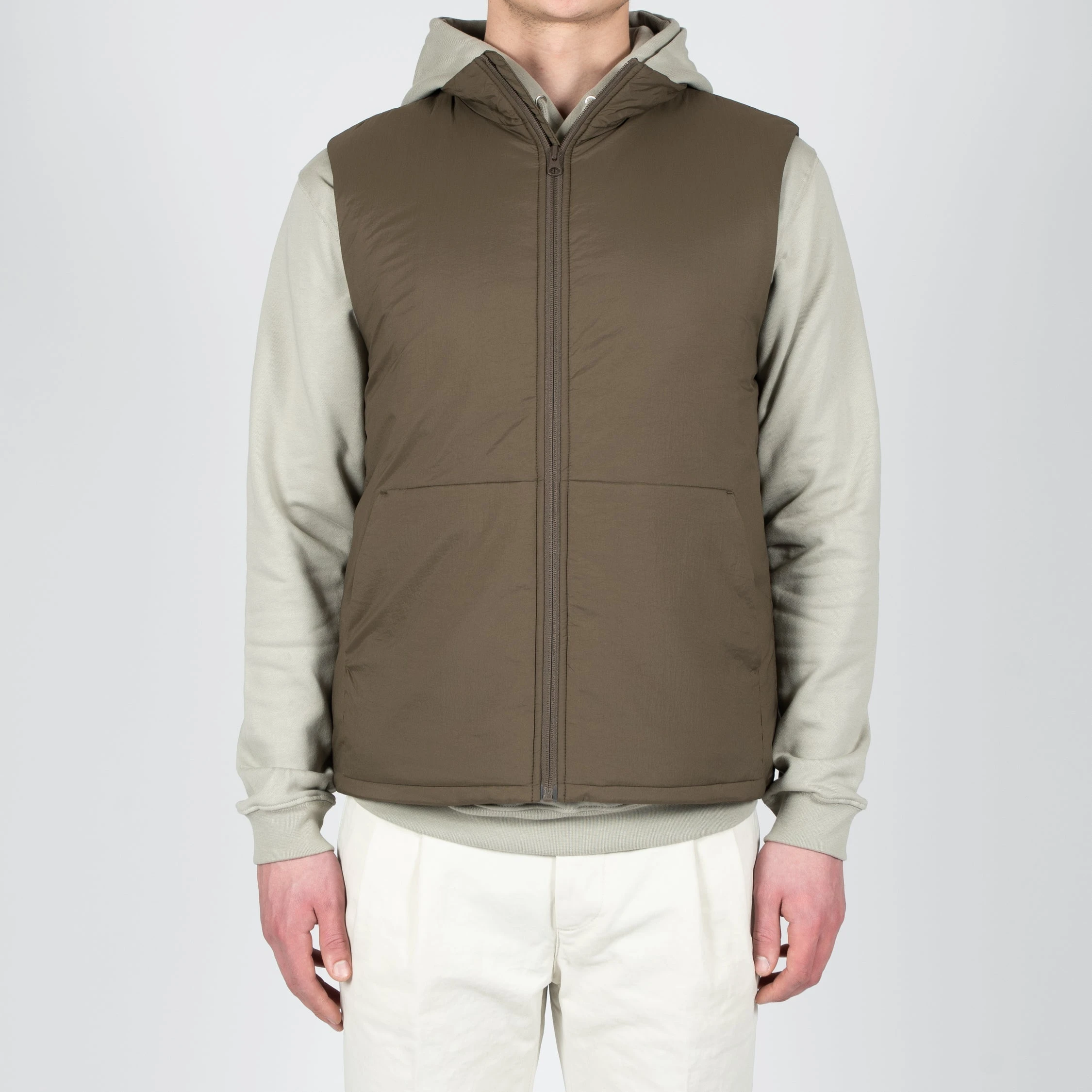 • Västen har två stycken sidfickor samt en ståkrage. Västen stängs med en dragkedja.