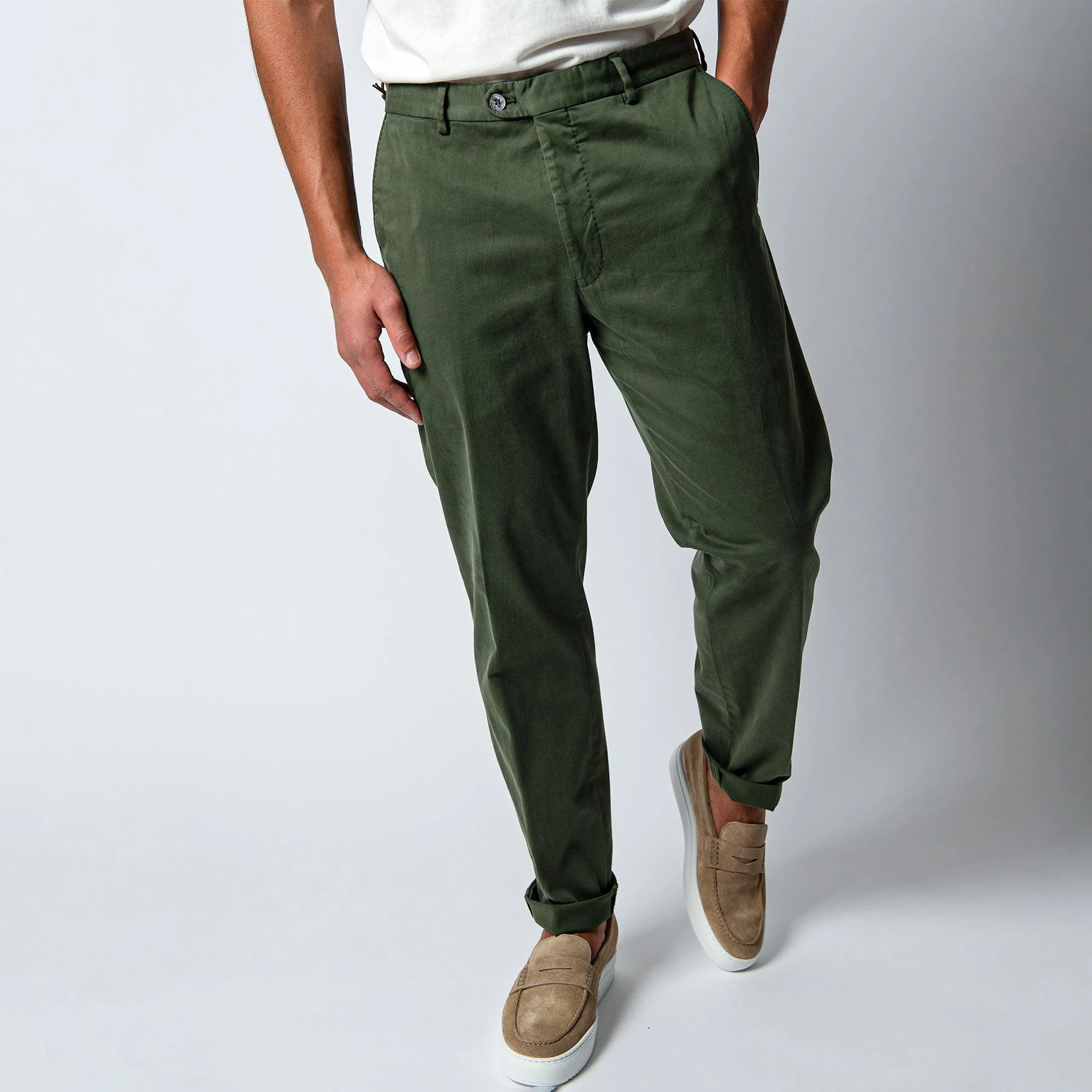 Oscar Jacobson DENZ COTTON STRETCH TROUSERS GREEN CERVO