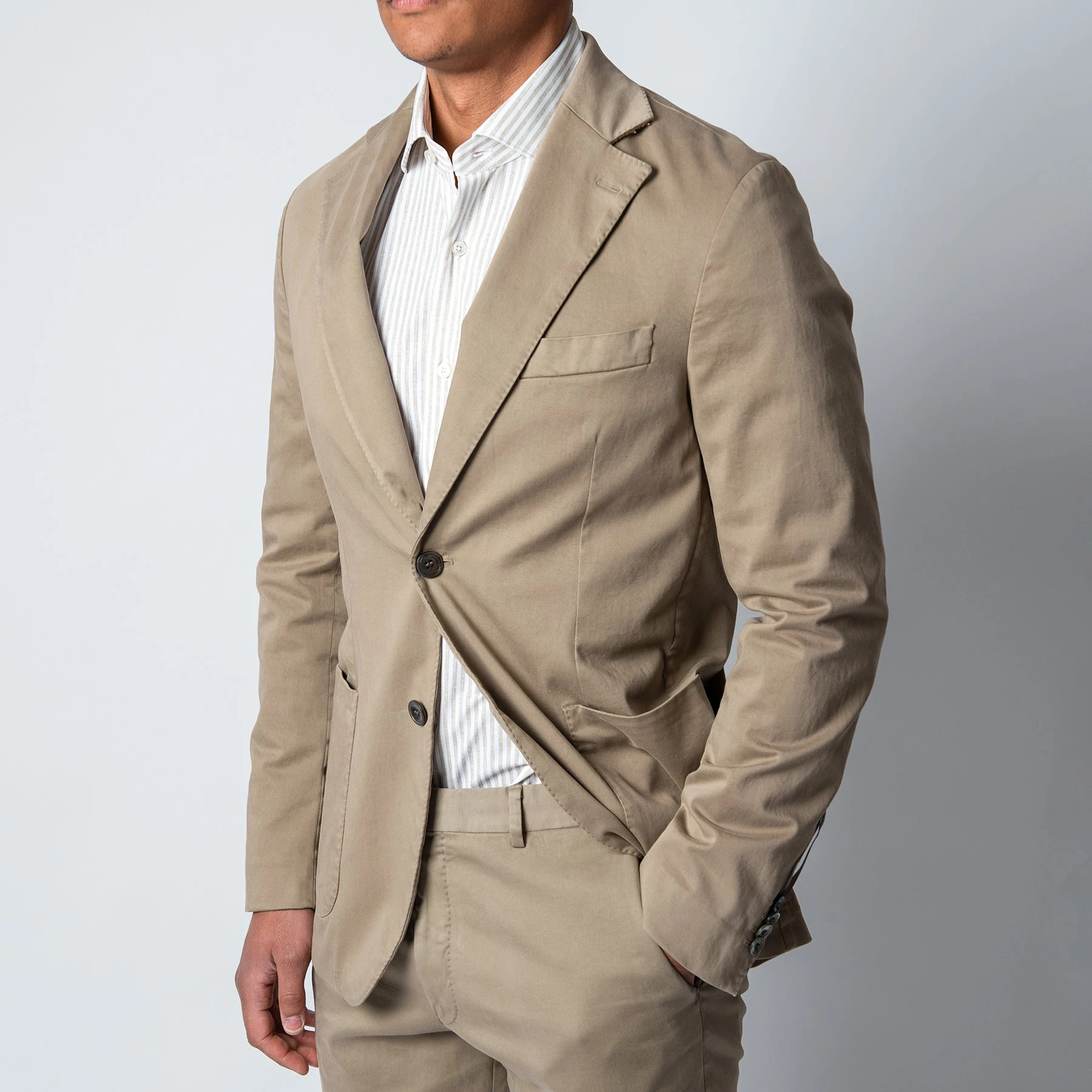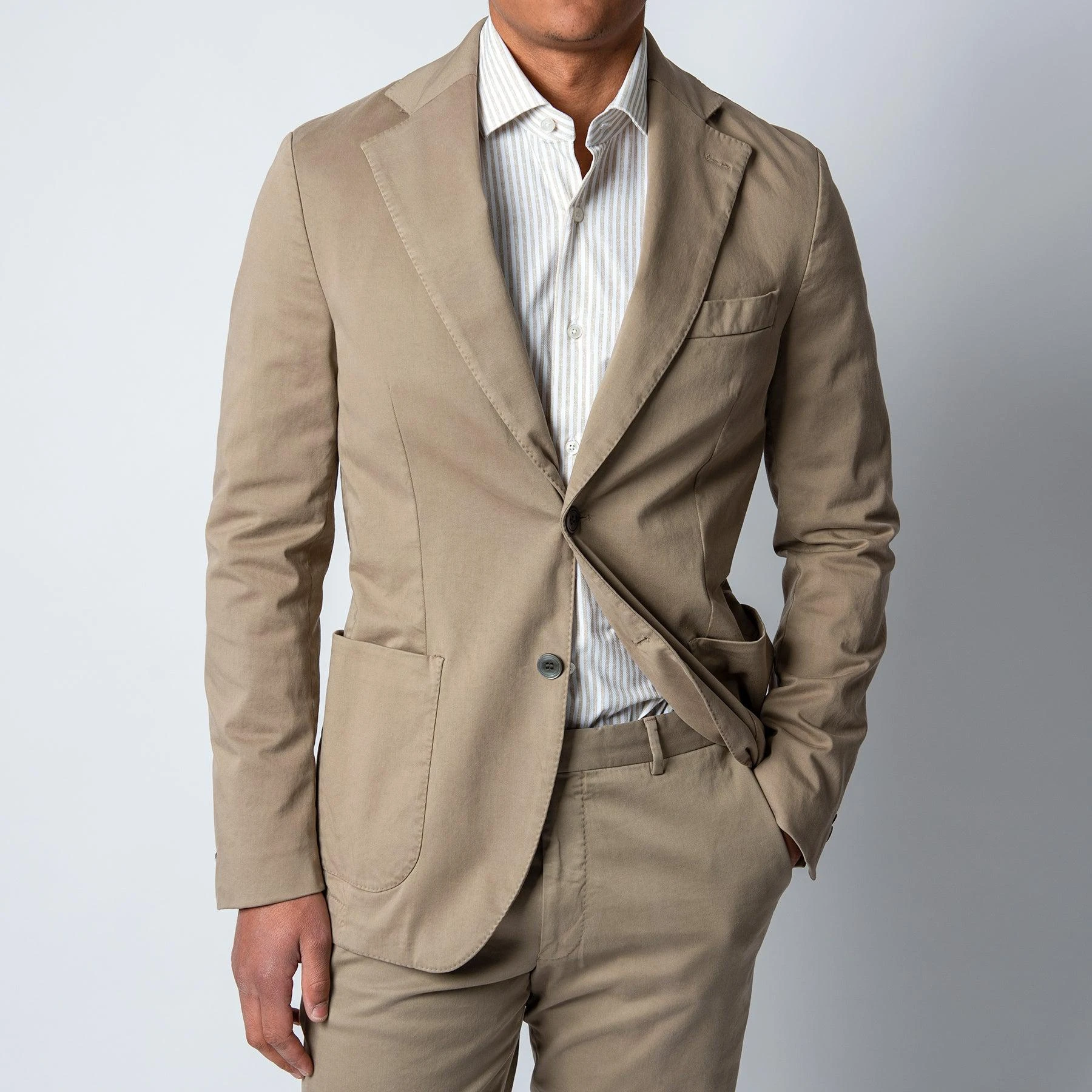 • Kavajen är sydd i ett bomullstyg och är tvättad i färgen.
