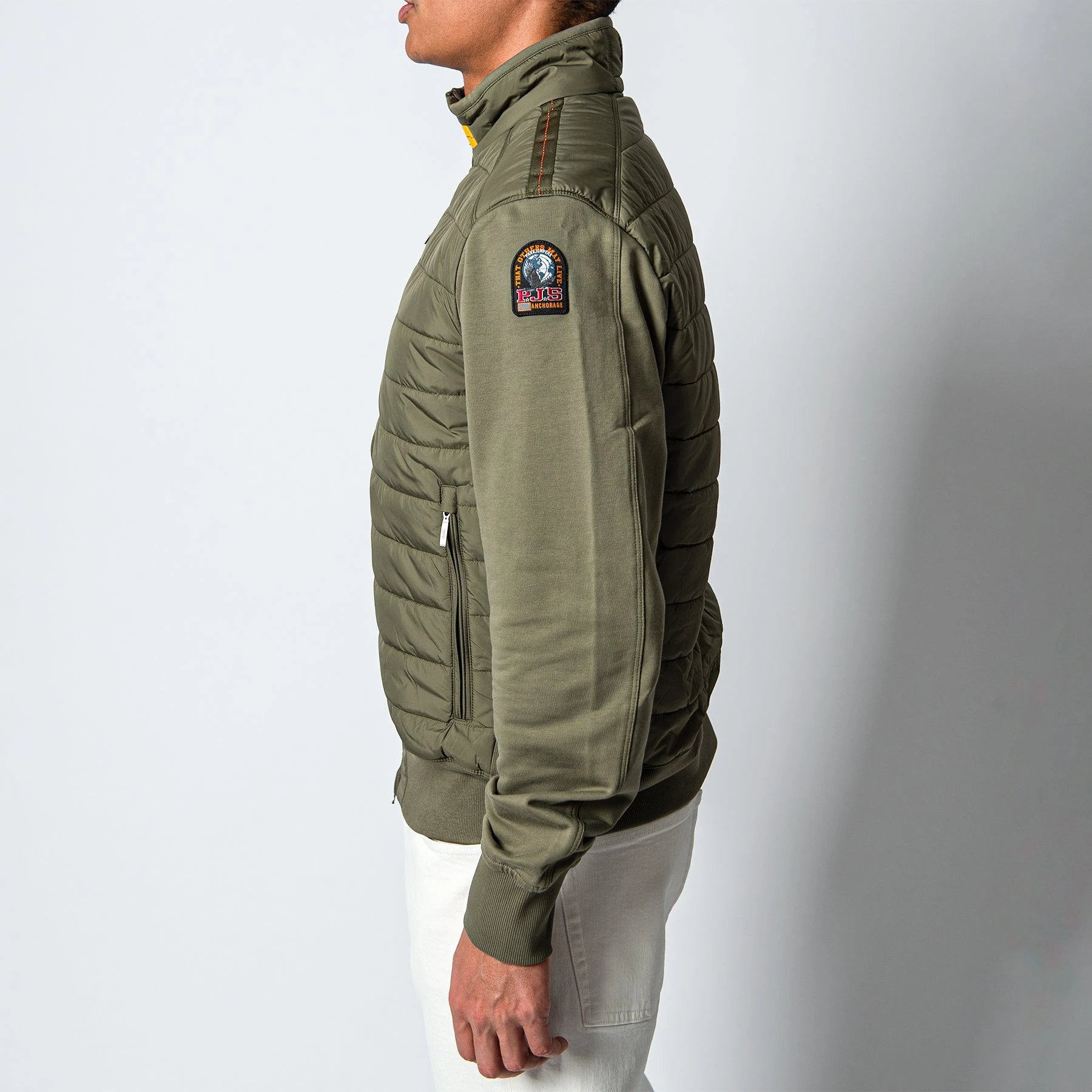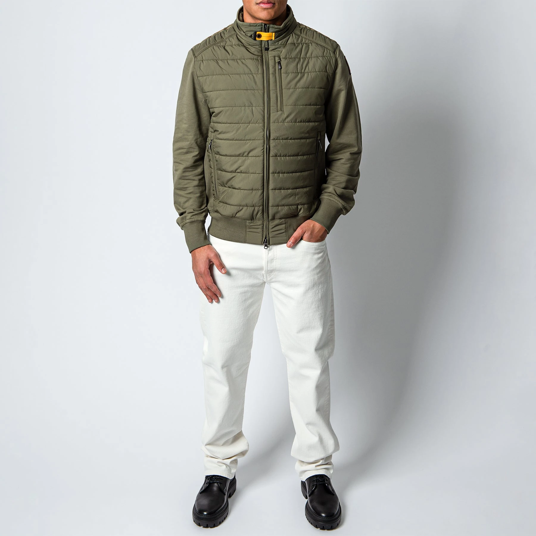 • Jackan har stickade ärmar och dunkuddar mot kroppen. Jackan stängs med dubbla dragkedjor och har en ståkrage. Jackan har två sidfickor och normalt sittande muddar vid ärm- samt plaggslut. Jackan har märkets ikoniska logotyp på vänster ärm.