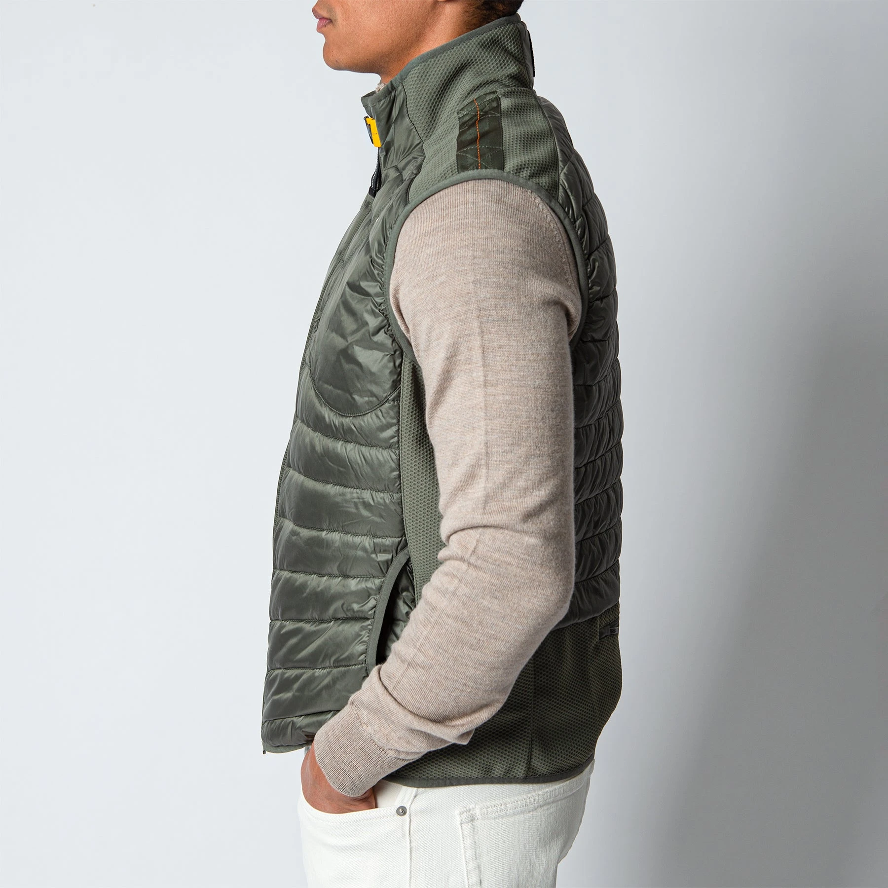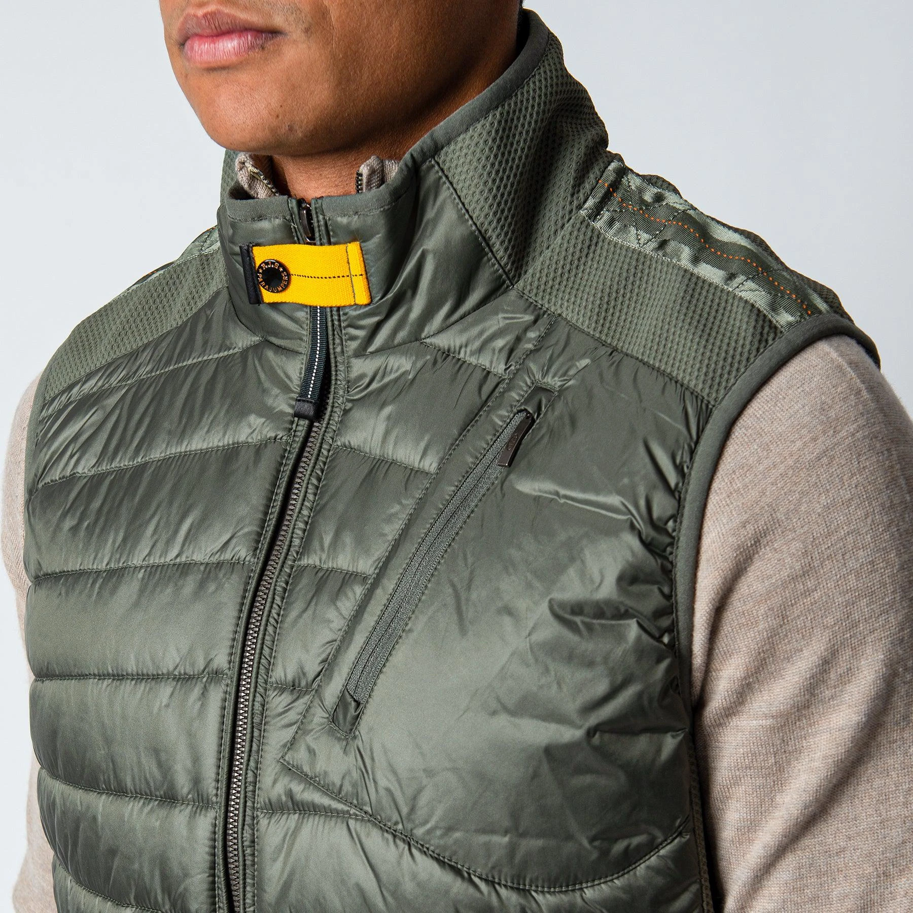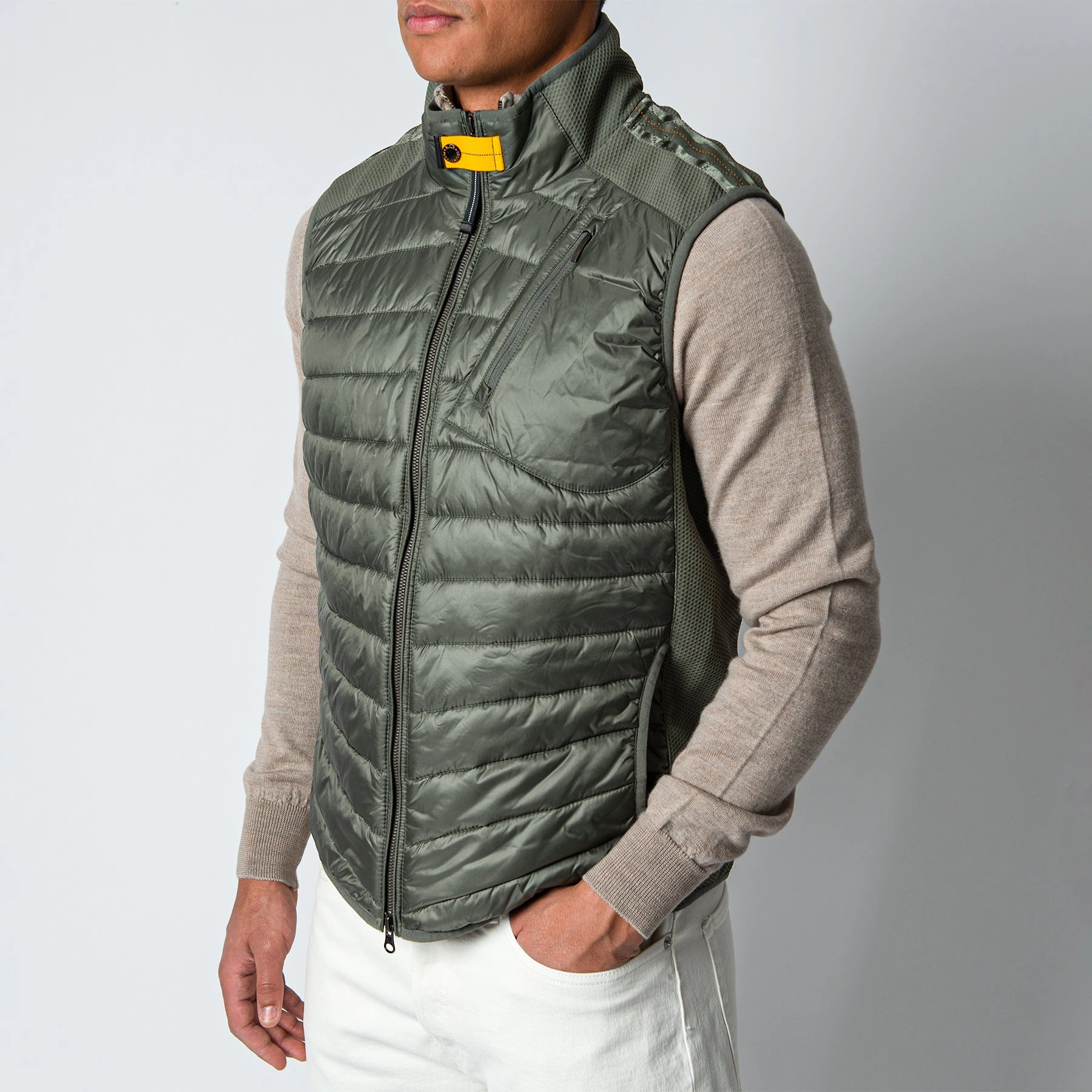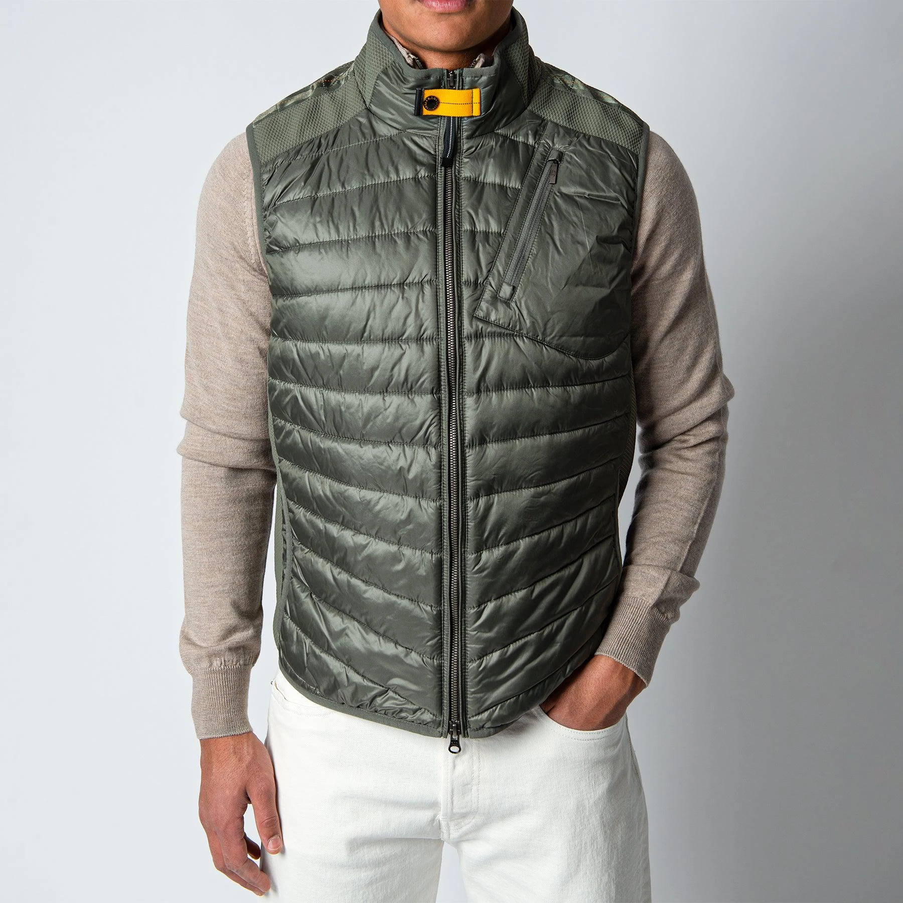 • Västen har dubbla sidfickor och stängs med dubbla dragkedjor. Västen har en bröstficka på vänster bröst som stängs med dragkedja och har en ståkrage med märkets ikoniska tygpatch på nacken.