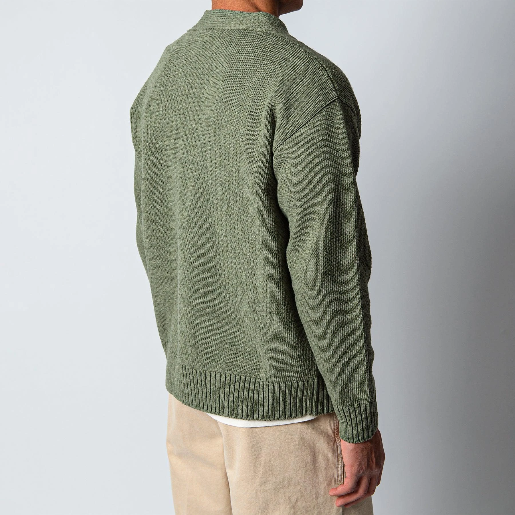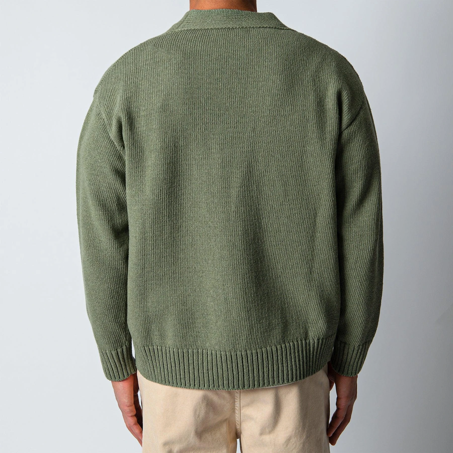 • Tröjan stängs med stora pärlemoknappar och har en djup v-ringning. Tröjan har normalt sittande muddar vid ärm- samt plaggslut och är boxig i passformen. Tröjan är stickad samt handbroderad i Italien.