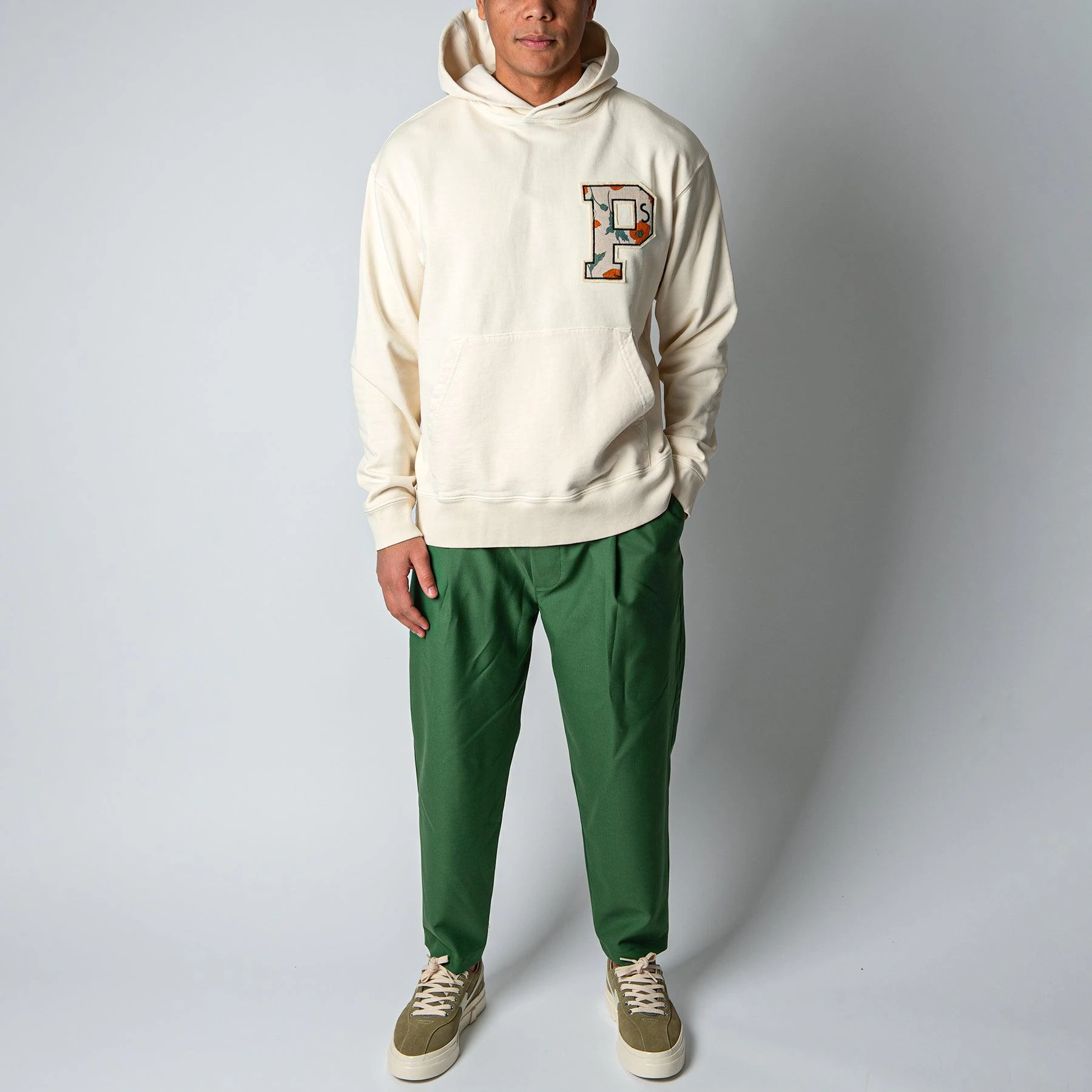 • Hoodien har en rymlig luva med dragsko samt droppad axel. Hoodien är oversized över kropp samt ärm och är midjekort. Hoodien har normlahårt sittande muddar vid ärm samt plaggslut och har ett ”P” broderat på börstet.