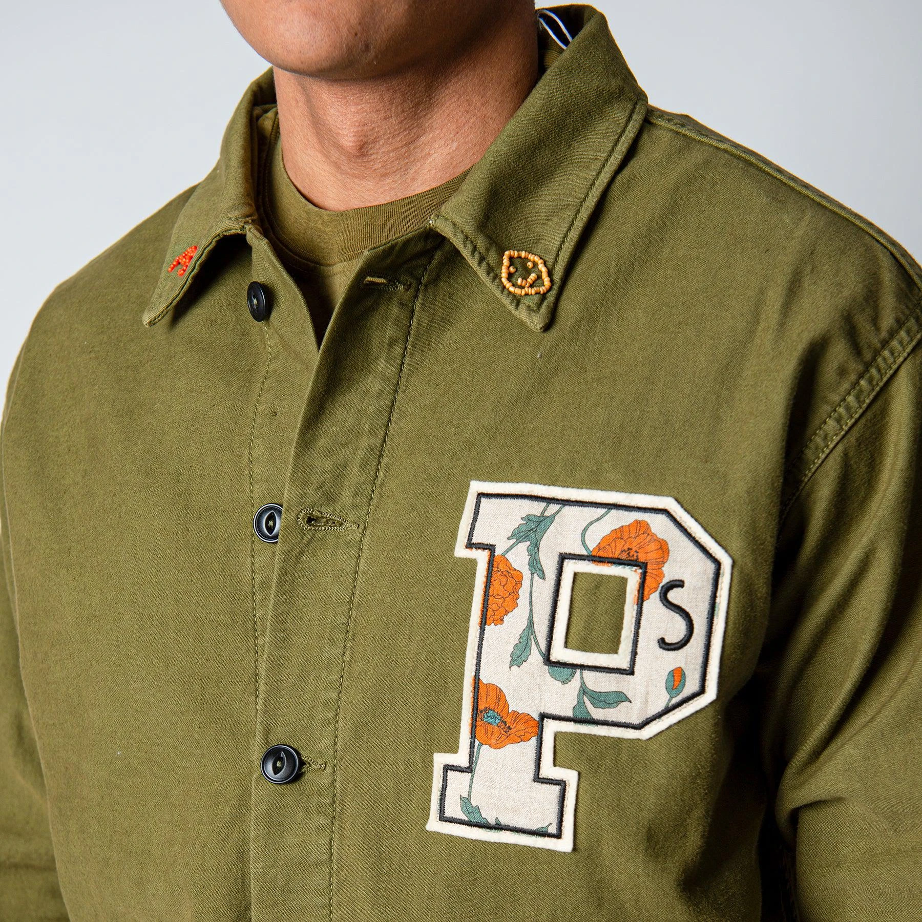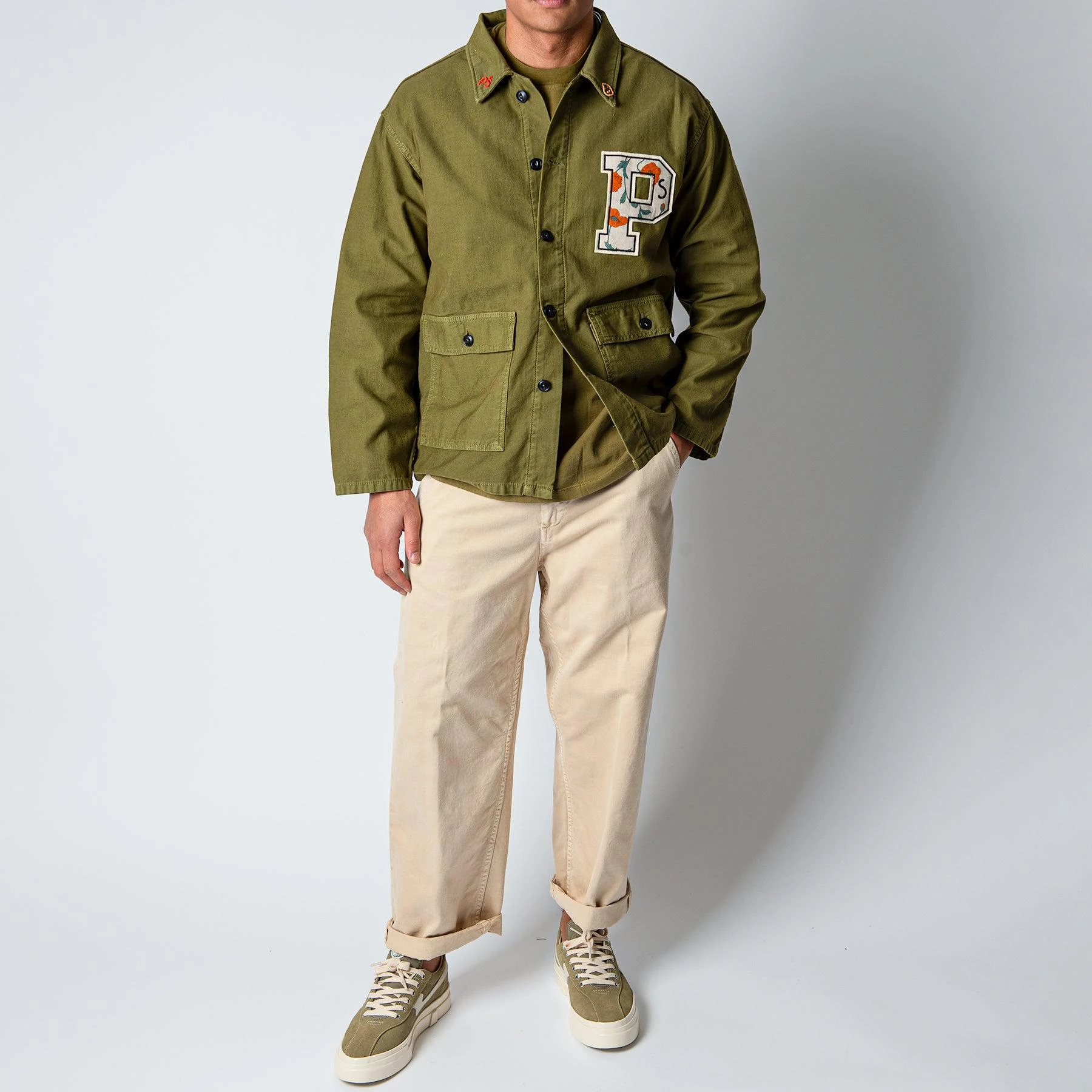 • Overshirten stängs med knappar och har en klassisk skjortkrage. Overshirten har två sidfickor som stängs med ficklock och knapp samt har märkets ikoniska P fastsytt på bröstet. Overshirten är boxig i modellen samt midjekort i längden och har en kraftigt droppad axel.