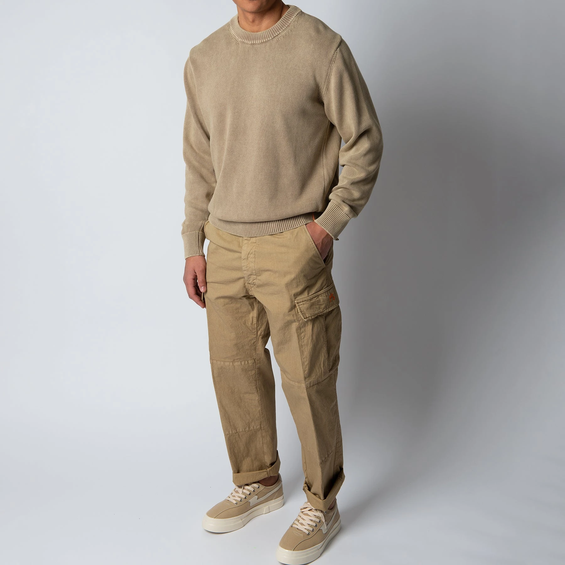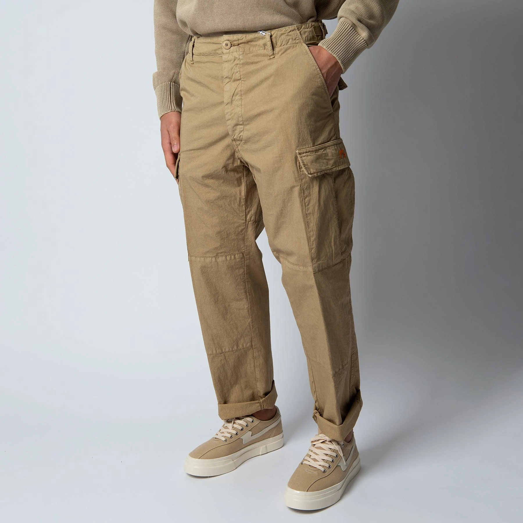 • Byxan är hög i midjan och vid över låren samt avsmalnande ner till normalbrett fotslut. Byxan har stora benfickor på vardera lår samt sidedjusters i midjan.