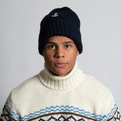 G.R.P LUXURY WOOL BEANIE WITH ANCHOR NAVY