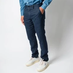 NN07 KARL LINEN TROUSERS NAVY BLUE