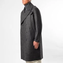 HARRIS WHARF LONDON MEN LONG PEACOAT PRESSED WOOL ANTHRACITE