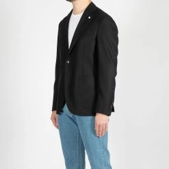 Luigi Bianchi Mantova LORO PIANA HOPSACK WOOL BLAZER BLACK