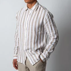 XACUS BLOCK STRIPE LINEN SHIRT KHAKI