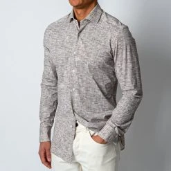XACUS BLOCK STRIPE LINEN SHIRT DARK BROWN