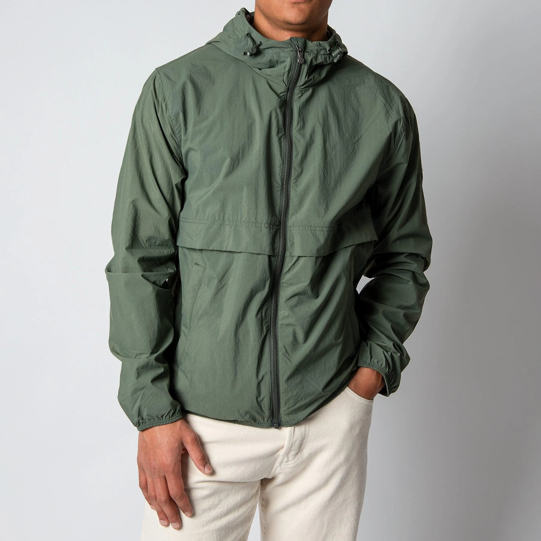 • Jackan är sydd i en tunn och härlig polyamid-kvalité och är vattenavvisande.