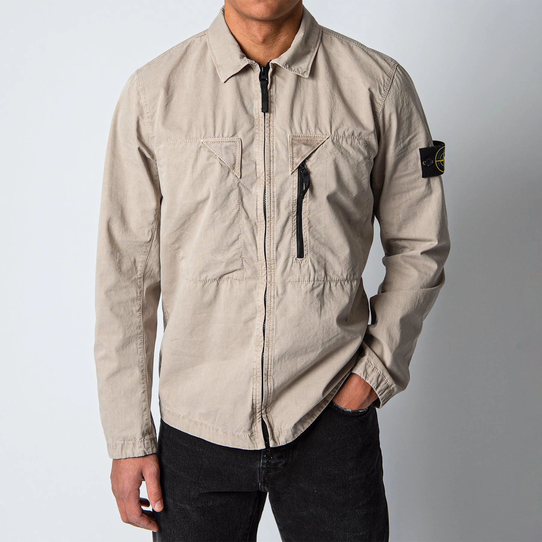 • Skjortjackan stängs med dubbla dragkedjor och har märkets ikoniska tygpatch på vänster arm. Skjortjackan har en enkel bröstficka med dragkedja på vänster bröst.