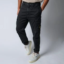 • Byxan stängs med dragkedja och knapp och har en stora fickor på bägge låren som stängs med ficklock och knapp. Byxan har märkets ikoniska tygpatch på vänster ben och är medelhög i midjan och bred normalbred över låren ner till ett normal brett fotslut.