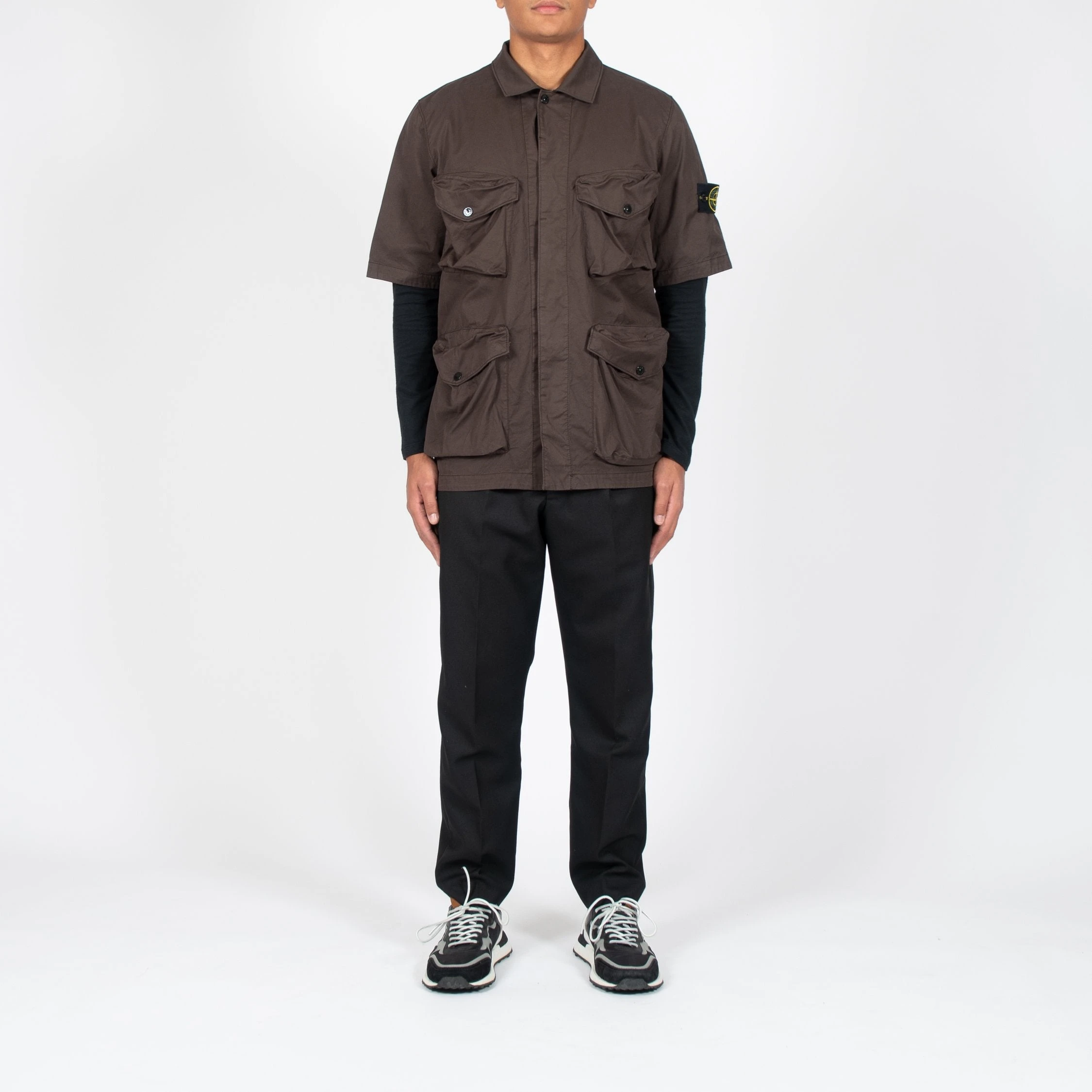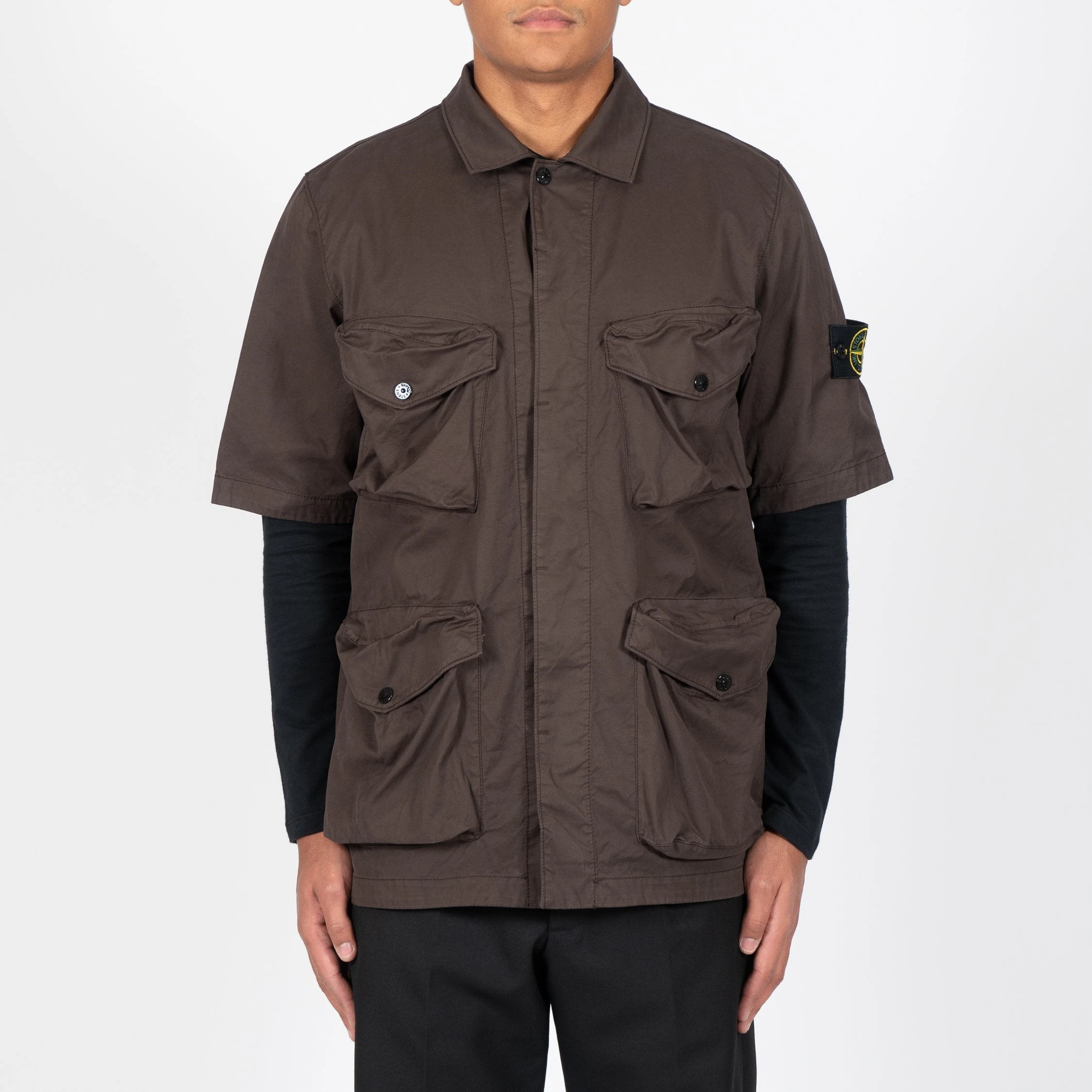 Stone Island SHORT SLEEVED OVERSHIRT BROWN