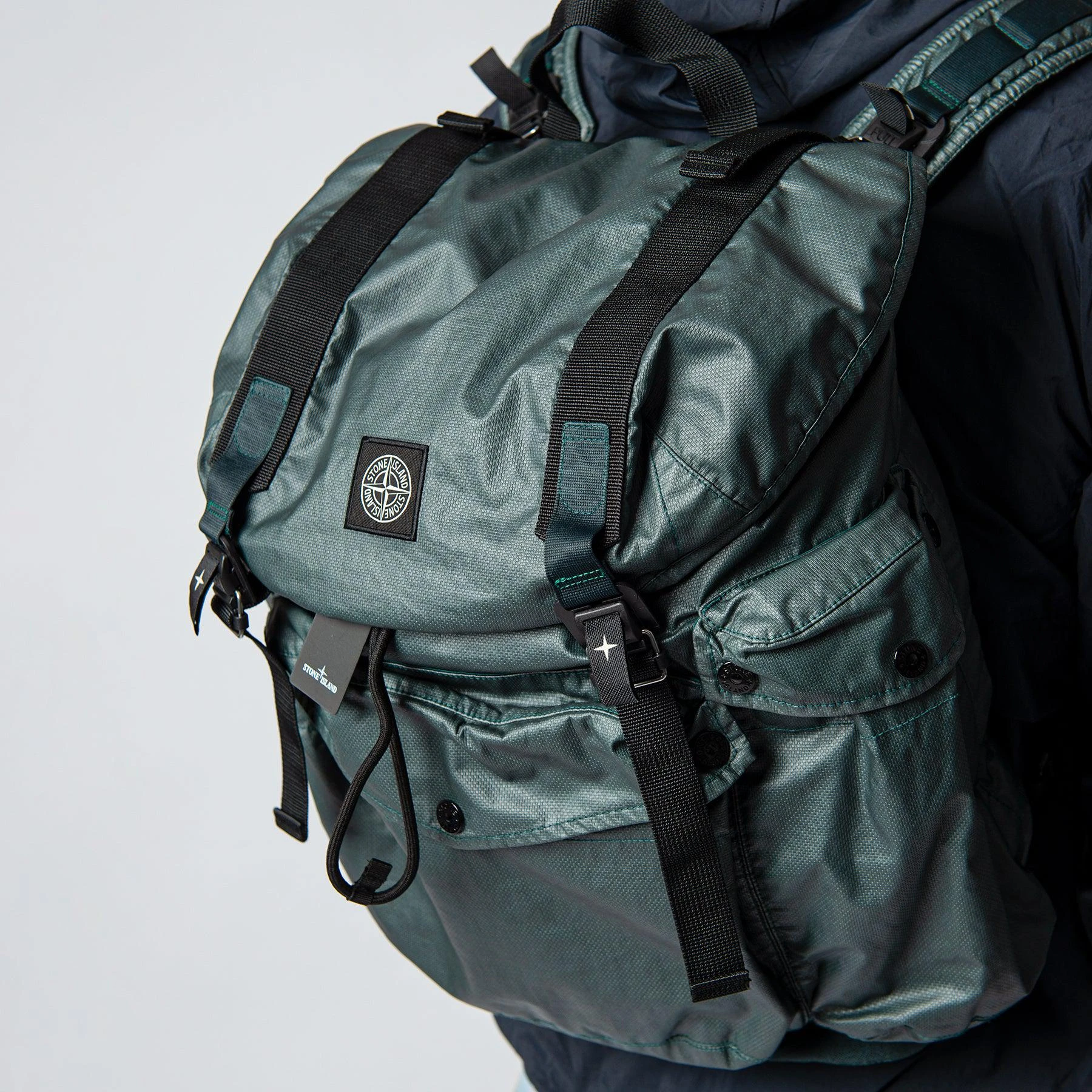• Ryggsäcken är gjord i en impregnerad vatten och vindmotståndig bomullskvalité och har Stone Islands ikoniska logga.