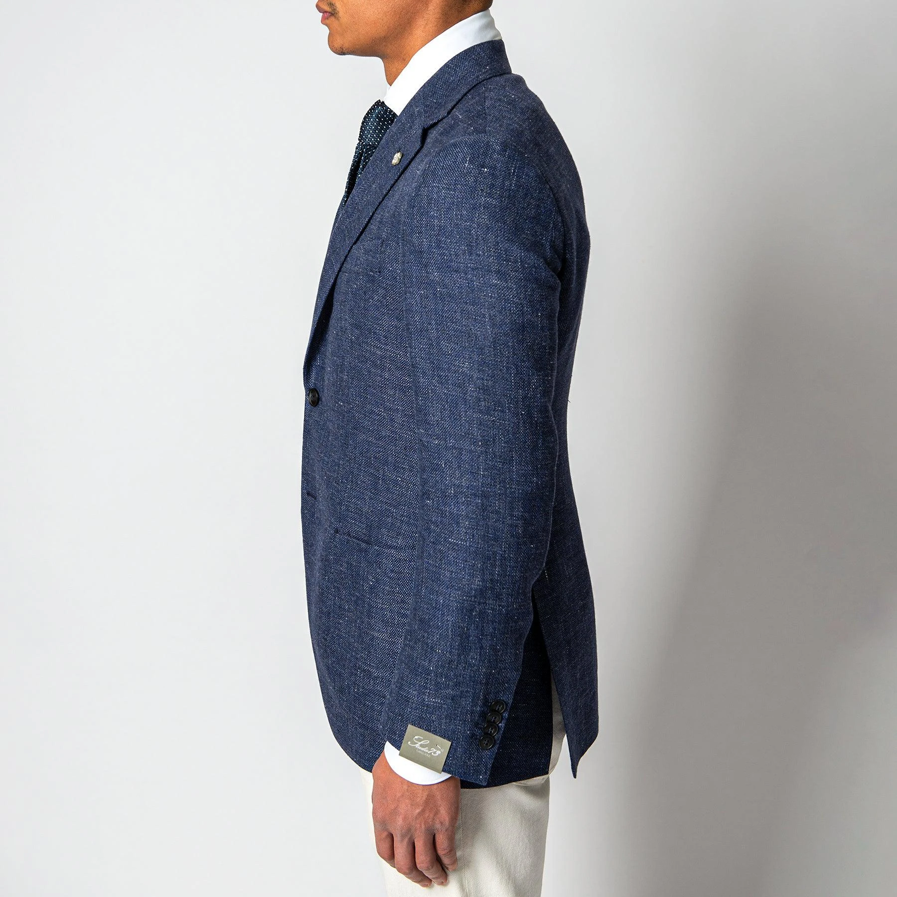• Kavajen är sydd i en melerad linne-ull kvalité.