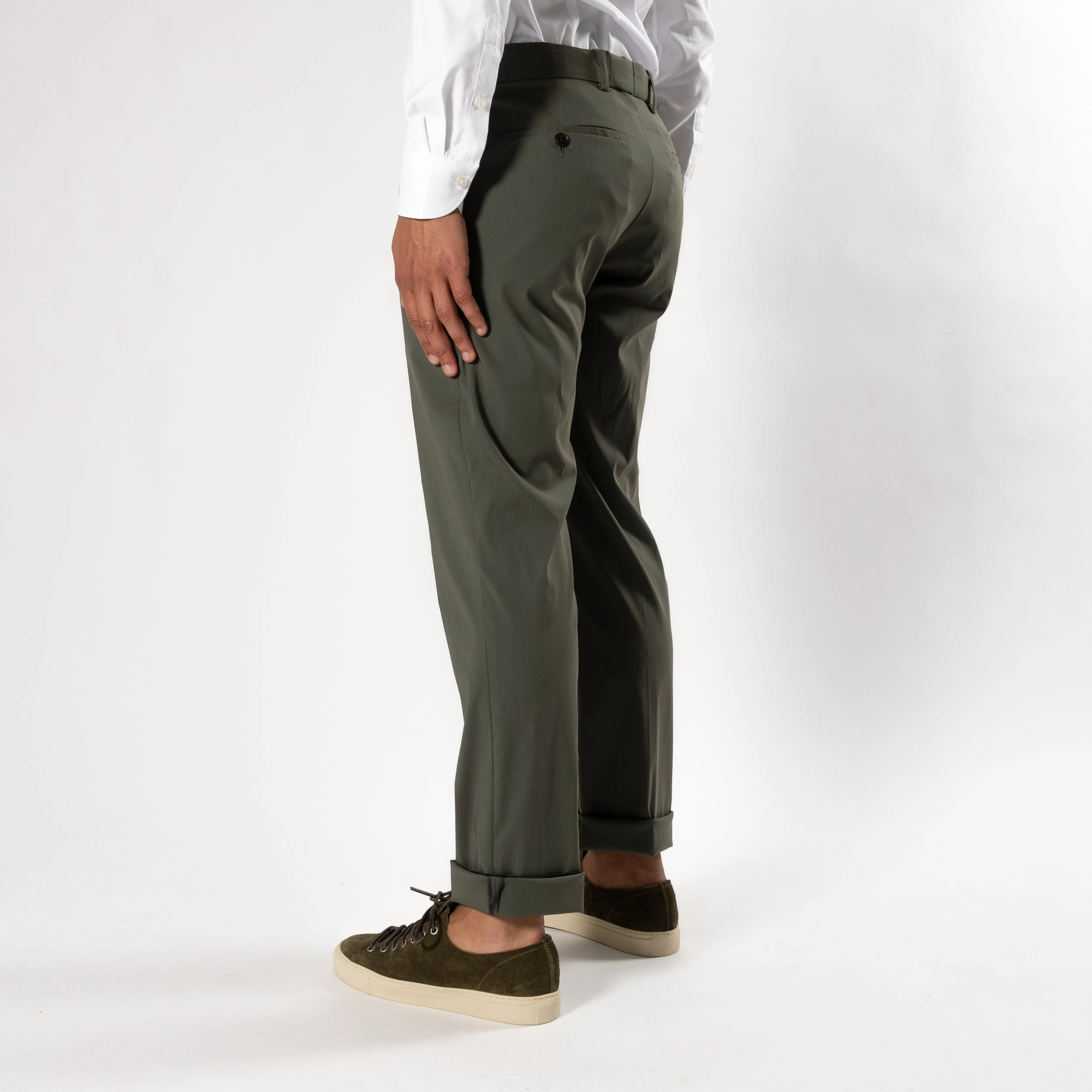 • Byxan är medelhög i midjan och har två stycken snedställda sidfickor samt två bakfickor med knapp. Byxan är avslappnad över låren och svagt avsmalnande ner till ett normalbrett fotslut.