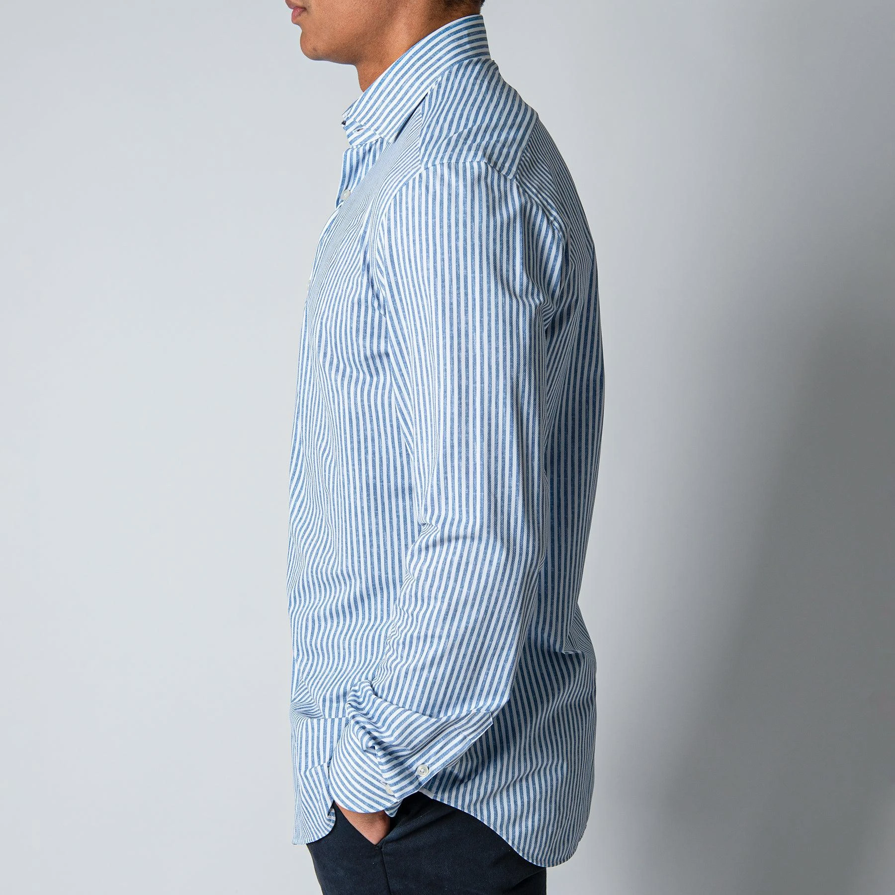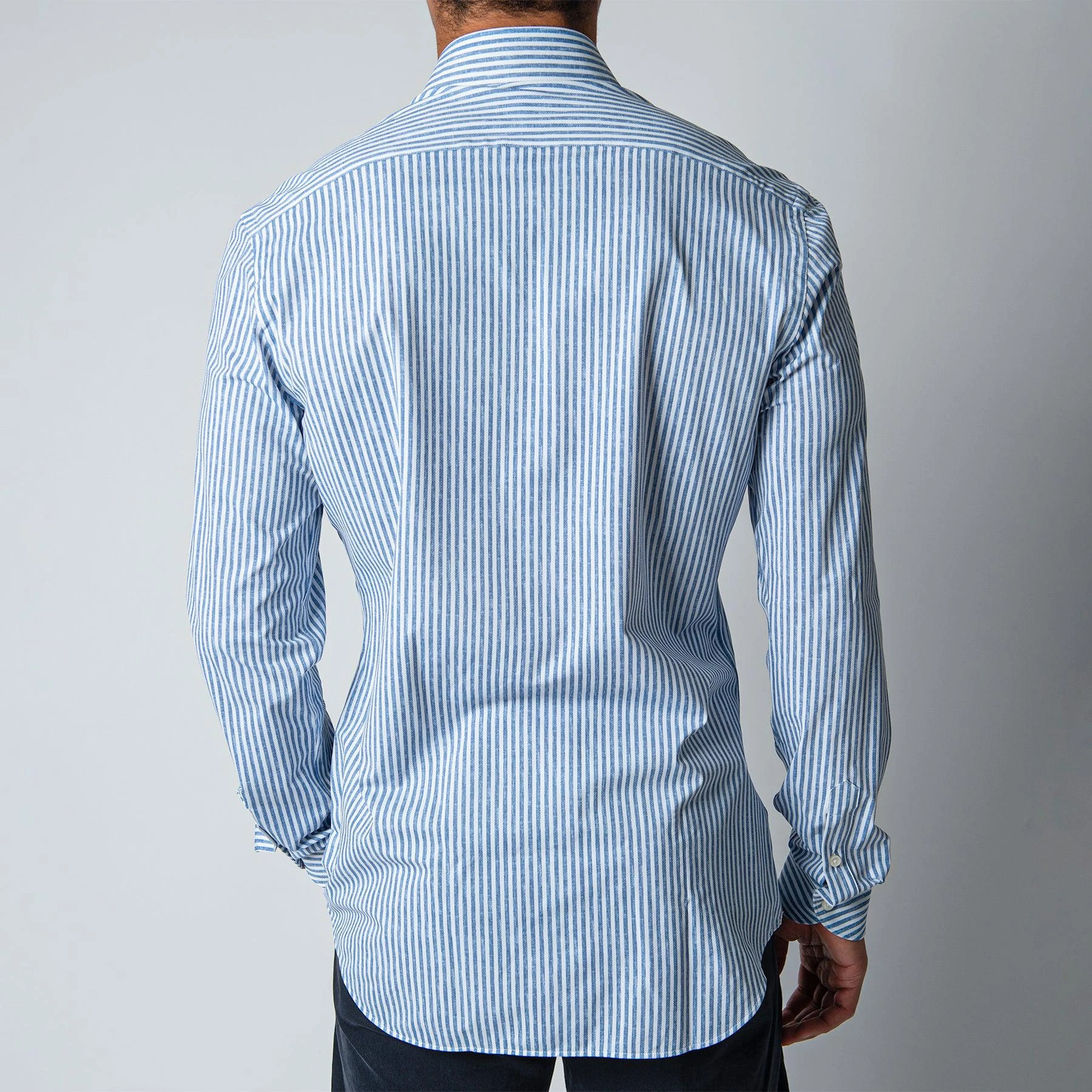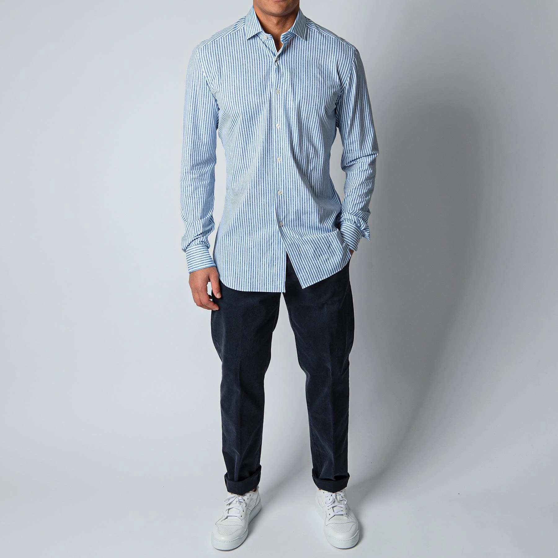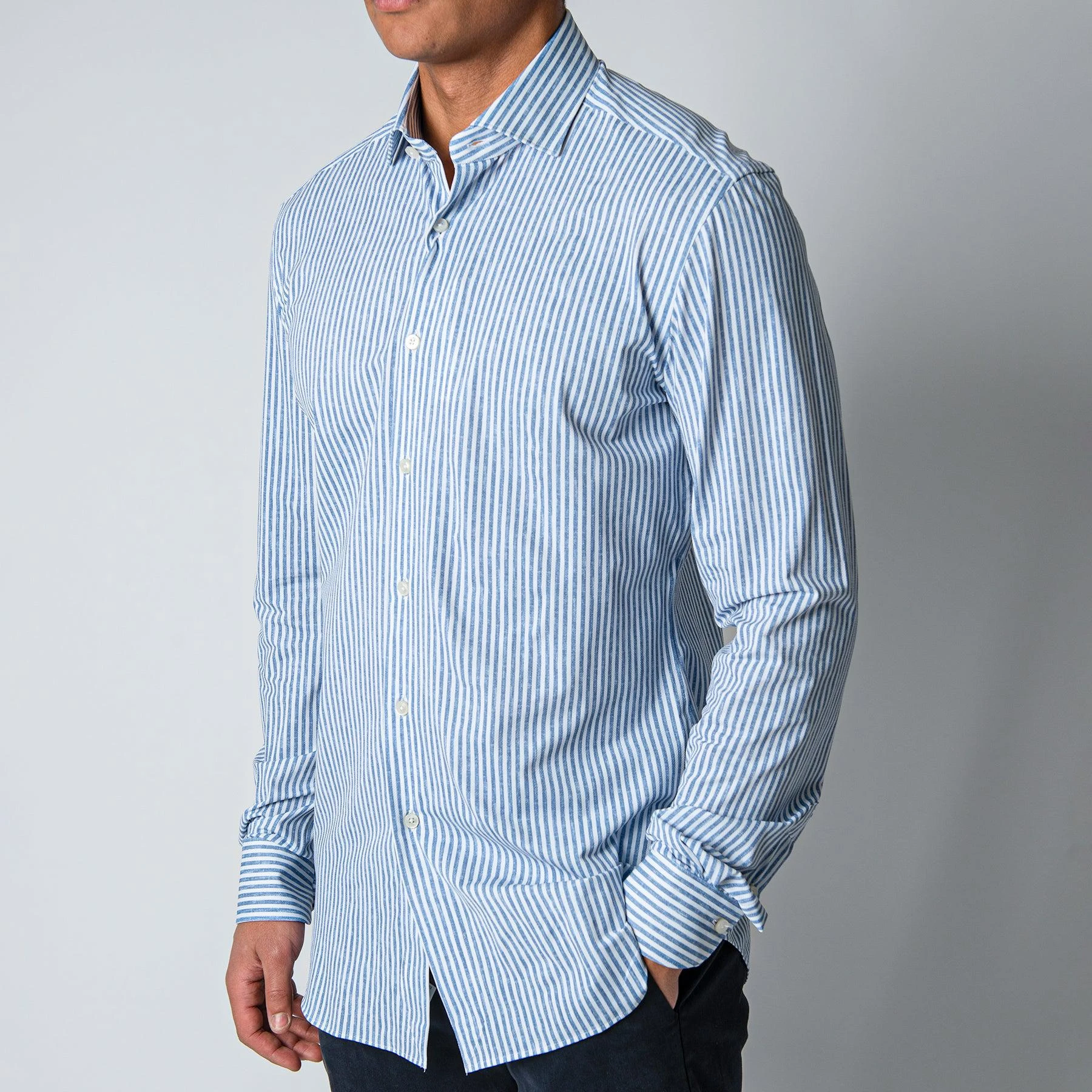 • Skjortan är sydd i en mjuk och härlig polyesterkvalité med stretch som andas bra och har en ljusblå-vit rand i tyget.