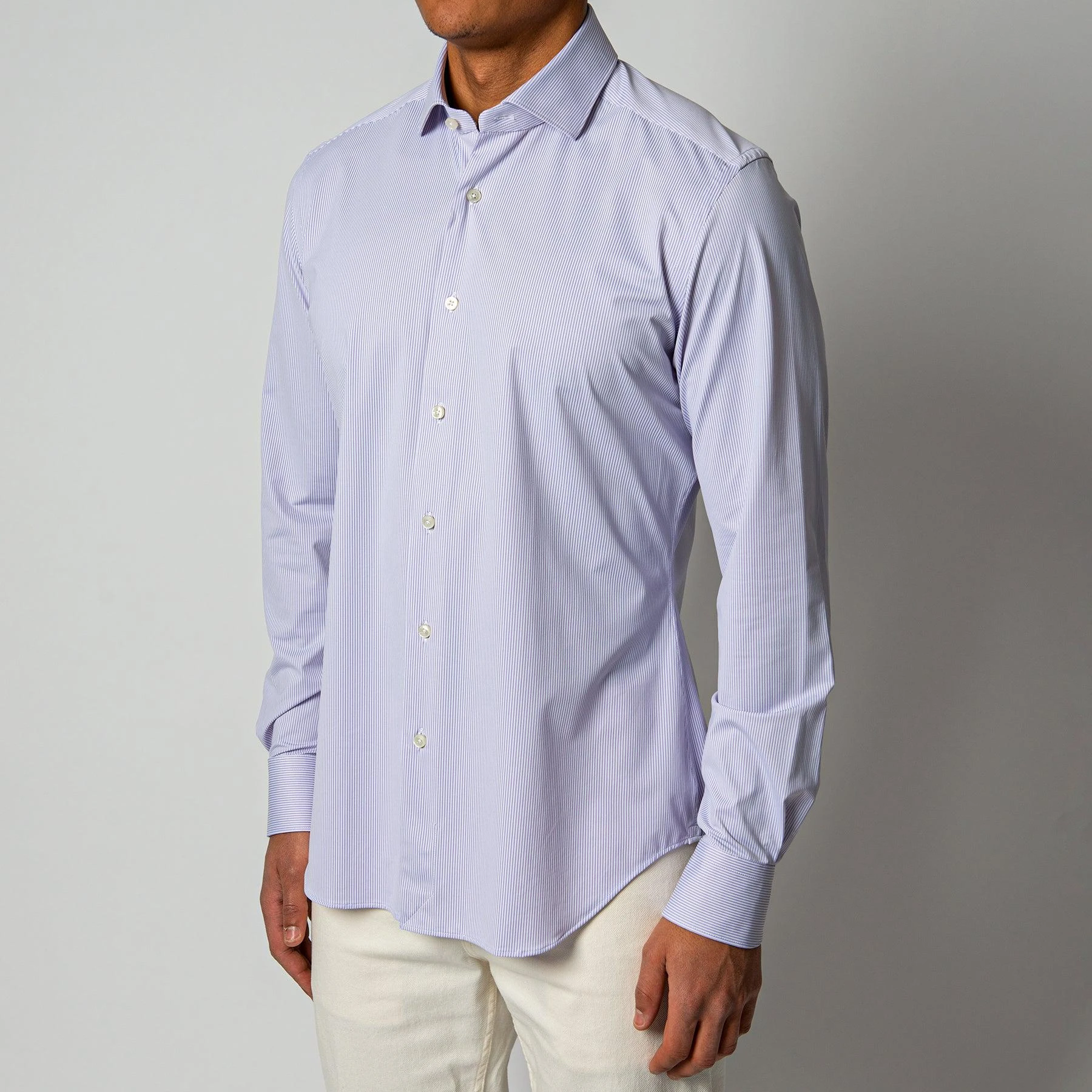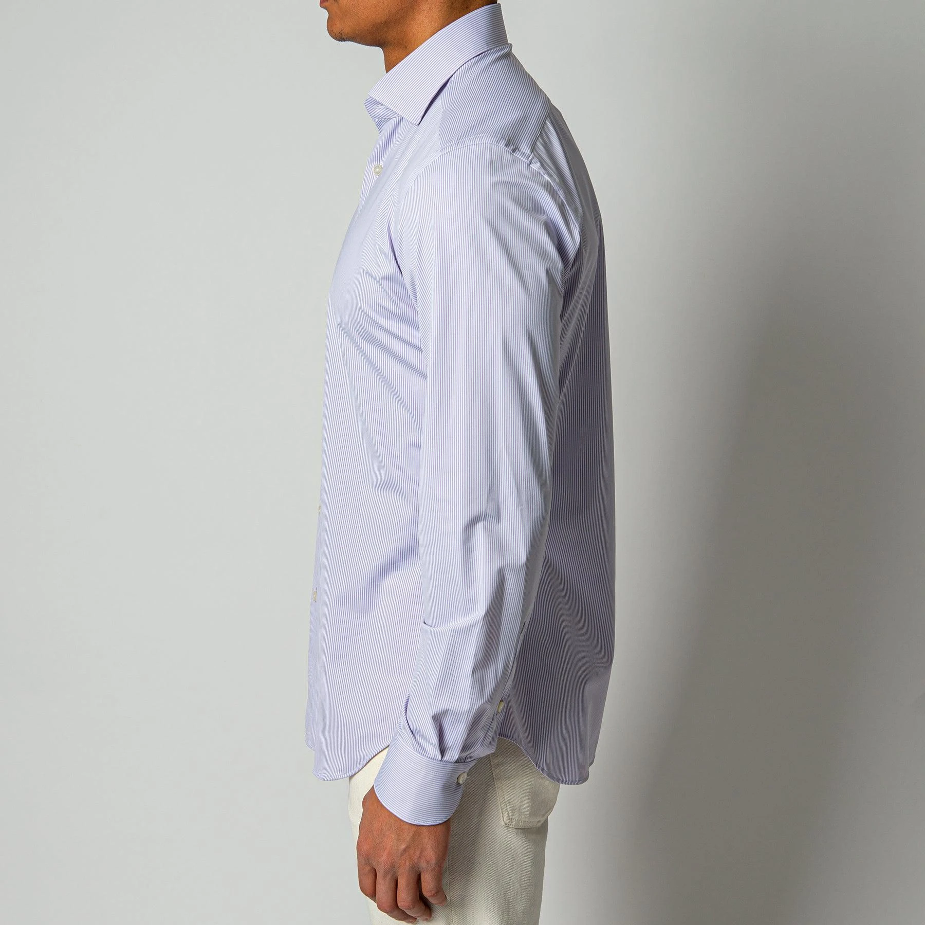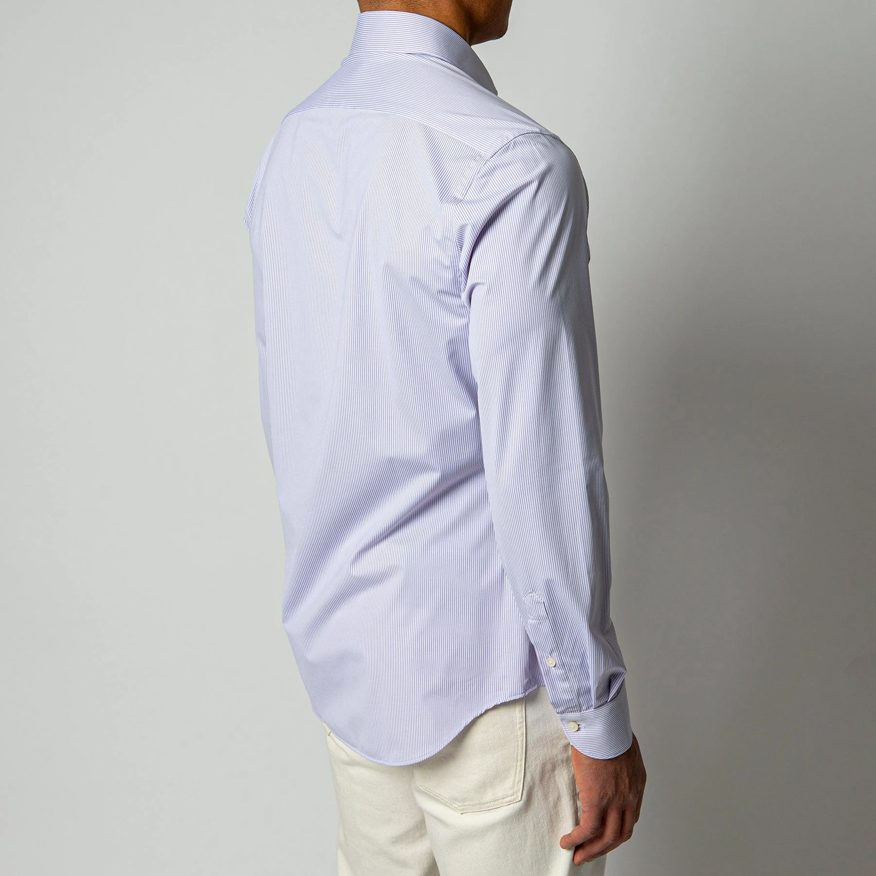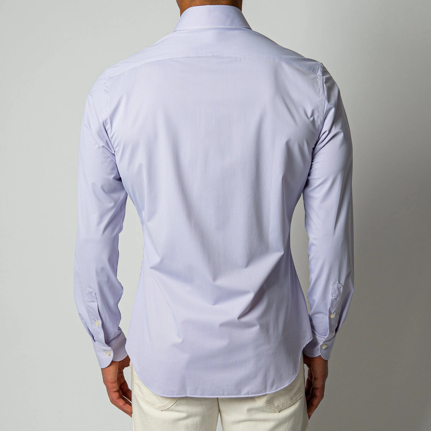 • Skjortan stängs med matchande pärlemoknappar och har en klassisk krage. Skjortan är svagt slimmad i modellen.