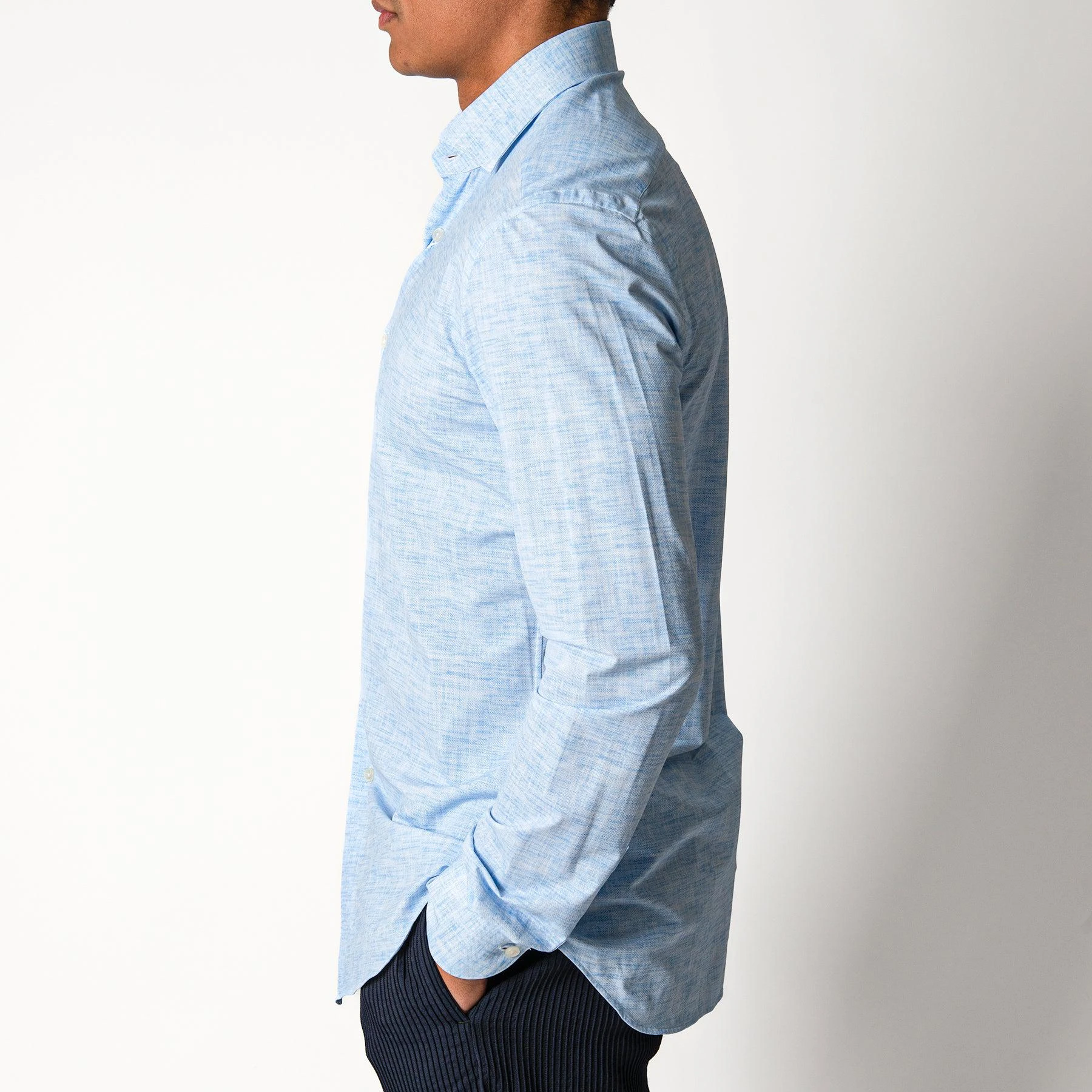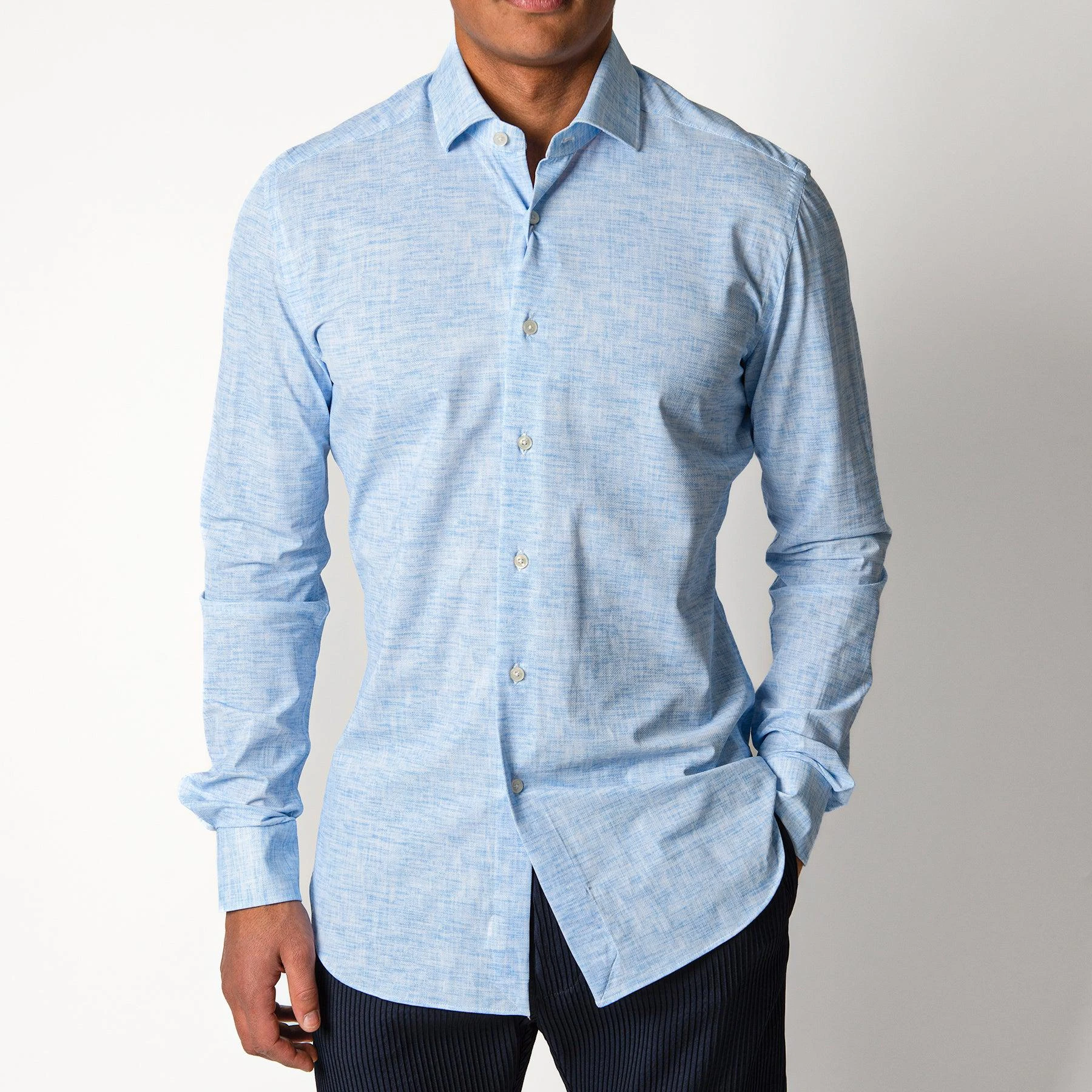 • Skjortan stängs med matchande pärlemoknappar och har en klassisk krage. Skjortan är svagt slimmad i modellen.