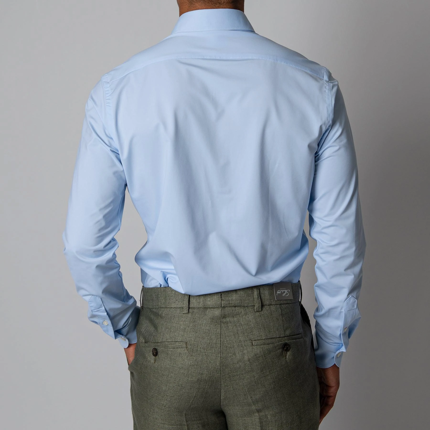 • Skjortan stängs med matchande pärlemoknappar och har en klassisk krage. Skjortan är svagt slimmad i modellen.