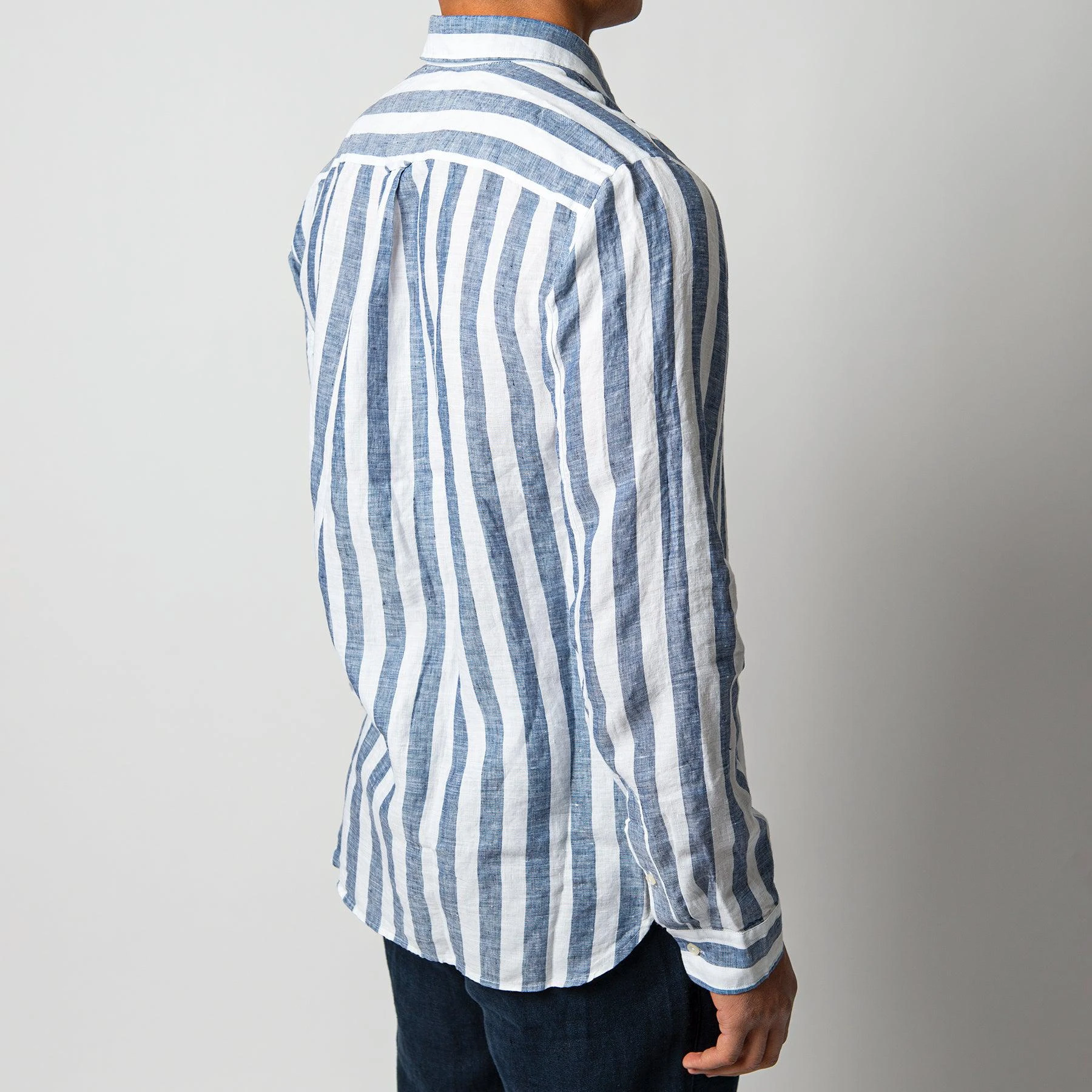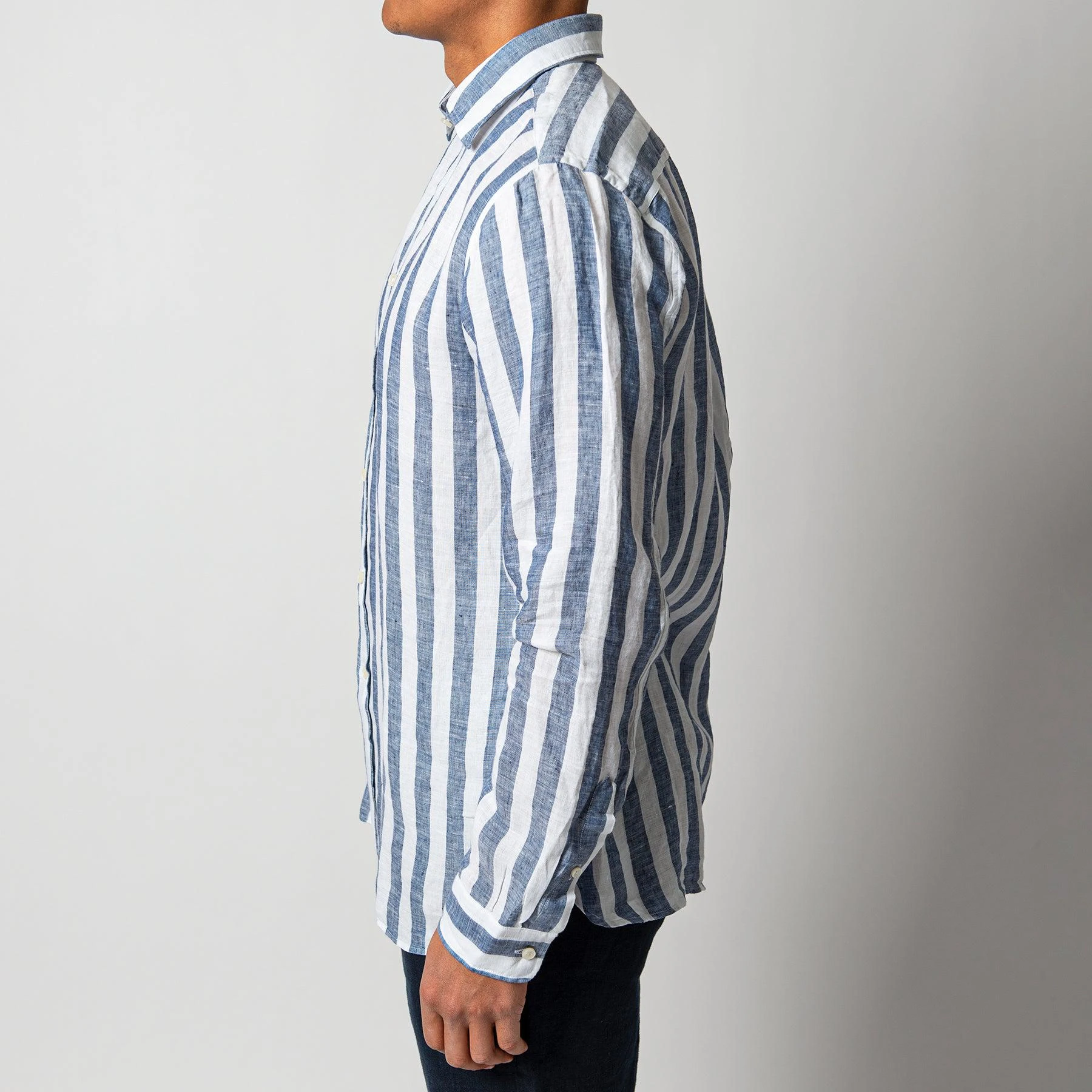 • Skjortan är sydd i en tunn och sval linnekvalité och har en bred rand.