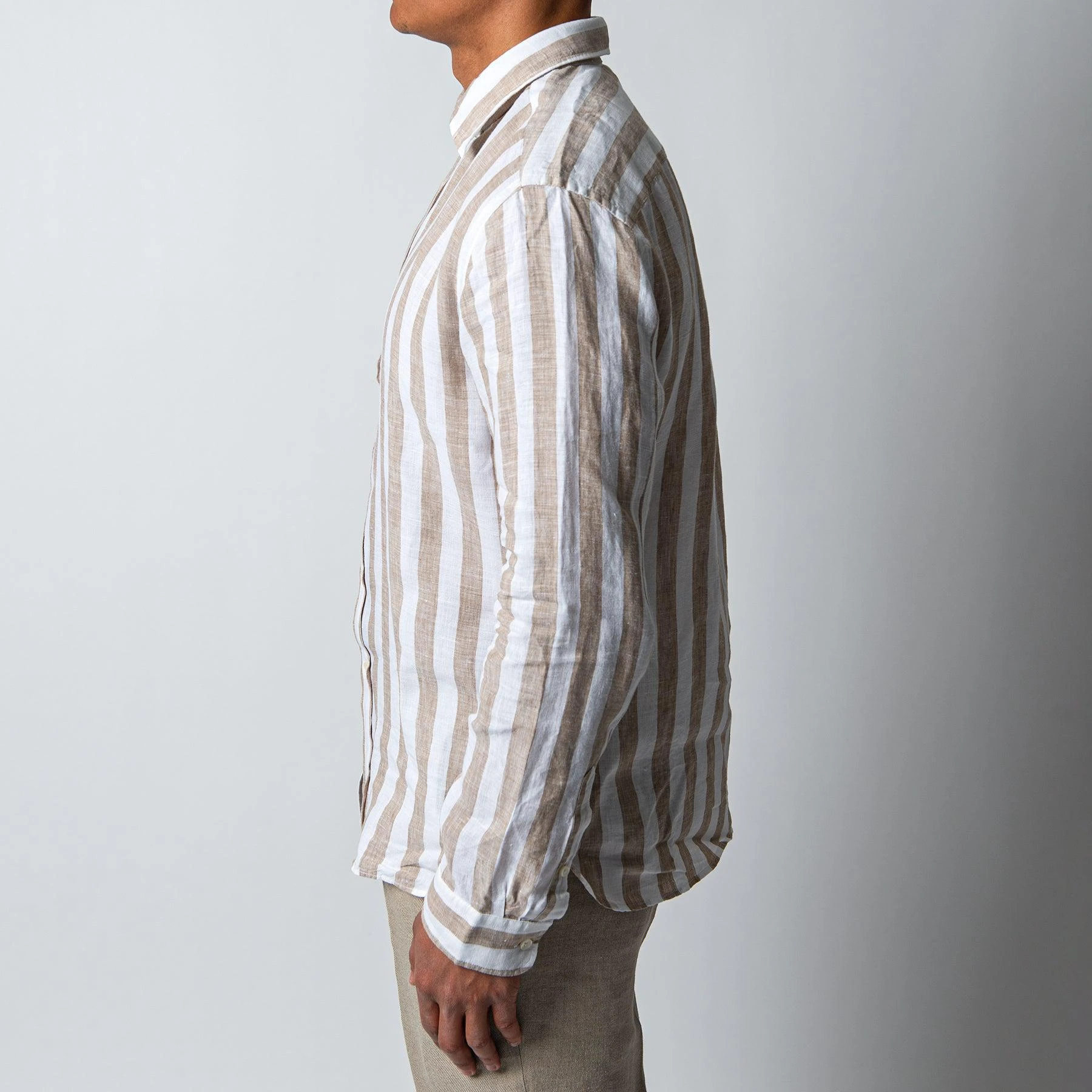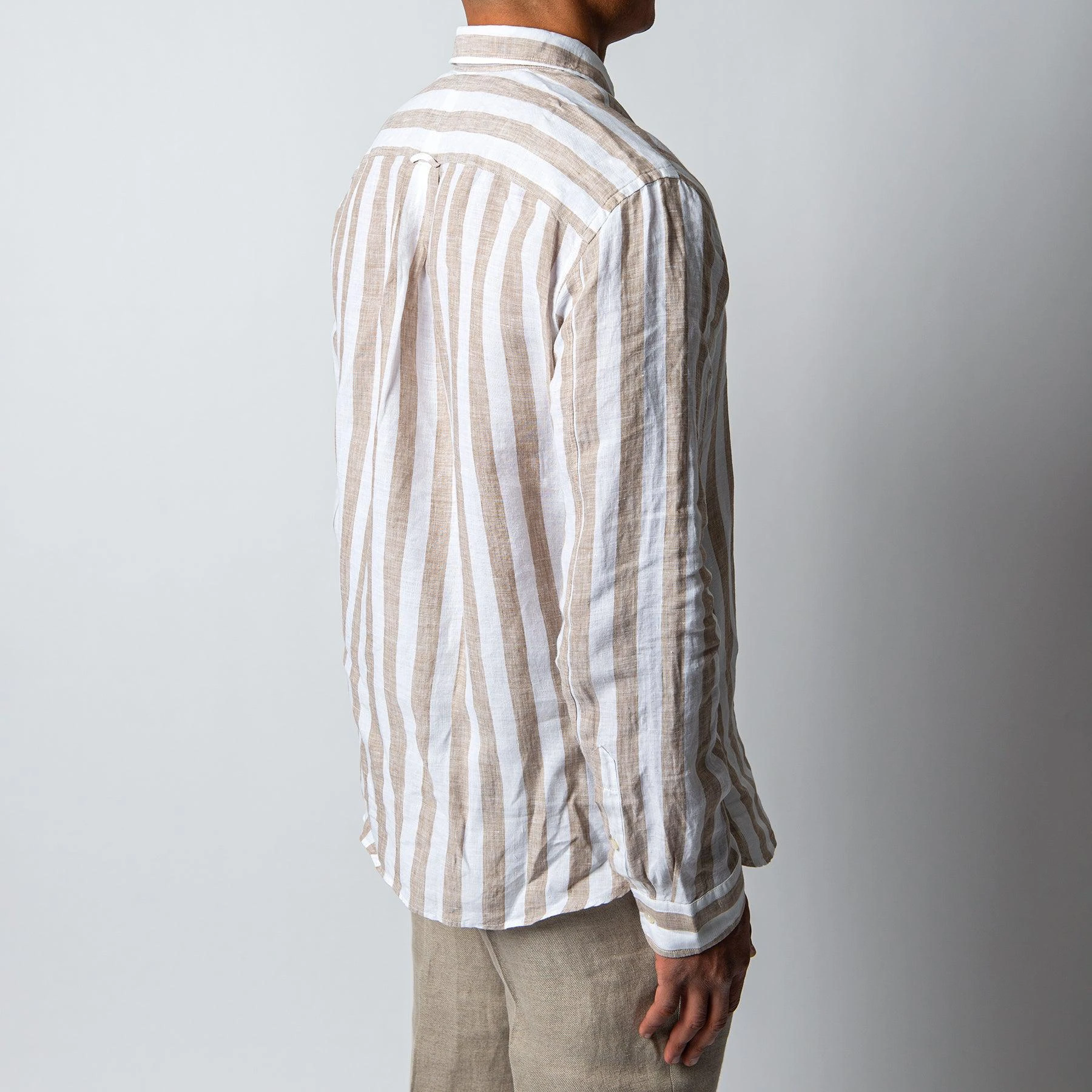 • Skjortan är sydd i en tunn och sval linnekvalité och har en bred rand.